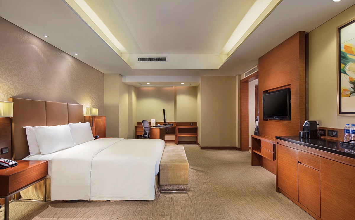 客房內(nèi)配備高速互聯(lián)網(wǎng)連接及無線網(wǎng)絡覆蓋、獨立的工作空間、42寸大屏幕液晶電視、寬敞舒適的衛(wèi)生間擁有獨立的淋浴間及浴缸,入住行政套房可尊享行政樓層禮遇。