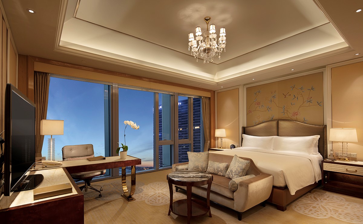 客房面積寬達48平方米,房間處處體現(xiàn)了現(xiàn)代化的設計風格,并配備了多種智能設施。