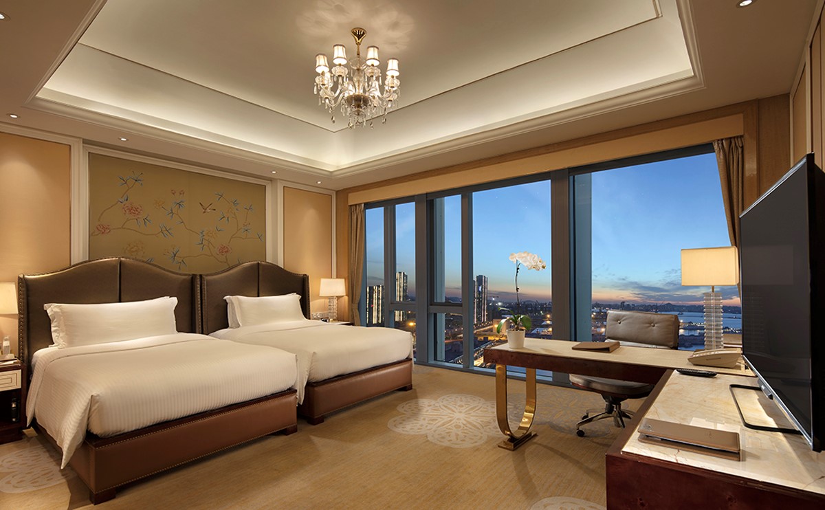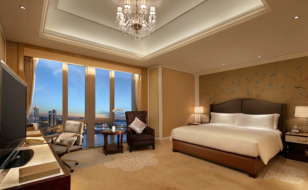 海景套房入住賓客可享用行政酒廊等。房間配備舒適的大廳和獨立臥室,總統(tǒng)套房提供給賓客高規(guī)格的奢華體驗,飽覽大連海港的瑰麗景色?,F(xiàn)代化的奢華與精致風格完美相融。