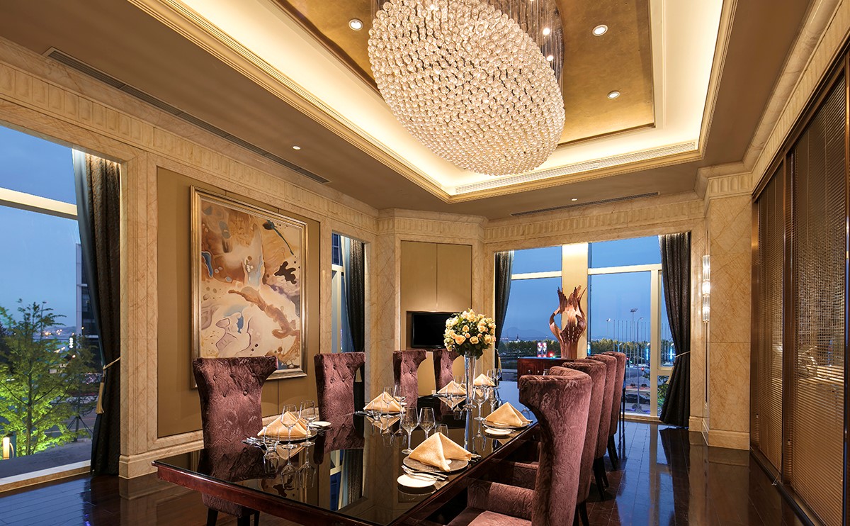 588平方米的無柱式大宴會廳和4個多功能廳均配備豪華的設施設備,可舉辦各類會議和宴會。