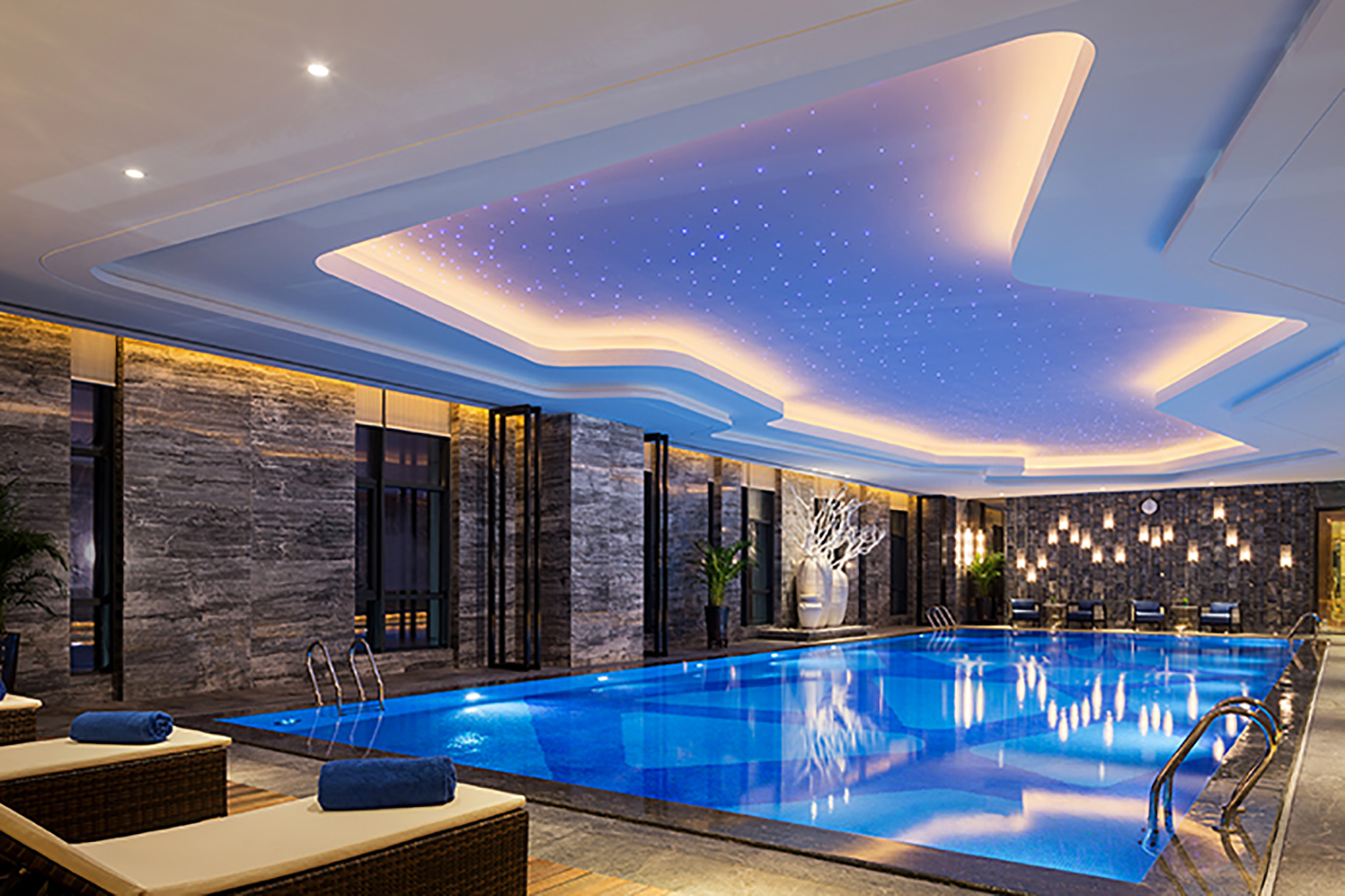 室內(nèi)恒溫游泳池寬敞明亮,水質(zhì)干凈,等你來(lái)暢游。
