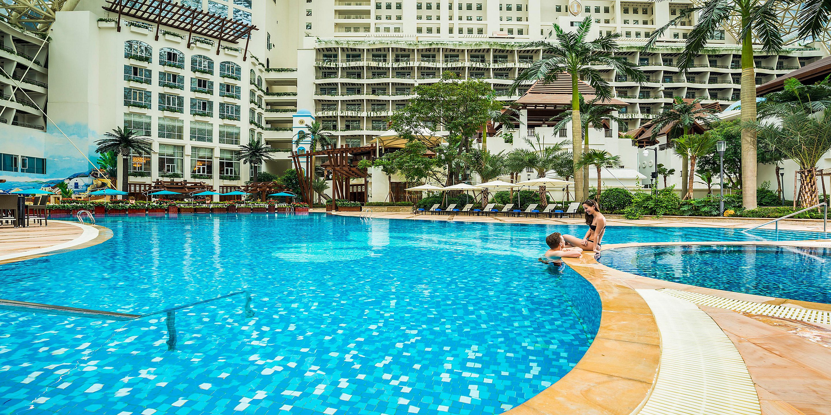 成都環(huán)球中心天堂洲際大飯店坐落于全球著名巨型單體建筑新世紀環(huán)球中心內(nèi),這座以“飛行之海鷗、漂浮之鯨、起伏之海浪”的建筑形態(tài),融合成都休閑旅游城市的概念,成為成都的新名片。酒店擁有975間豪華客房及套房,每間客房皆有獨特的海景觀景陽臺,將細砂海岸線及室內(nèi)沙灘的天堂島海洋樂園攬入懷中,沿海岸風情小鎮(zhèn),棧橋碼頭,無邊界湯池,及150米室內(nèi)LED屏等,壯麗的海天景象一覽無余。迷人的地中海風情建筑與別具一格的海洋主題渾然一體,更有世界一流美食,為您傾力打造美輪美奐的入住體驗。