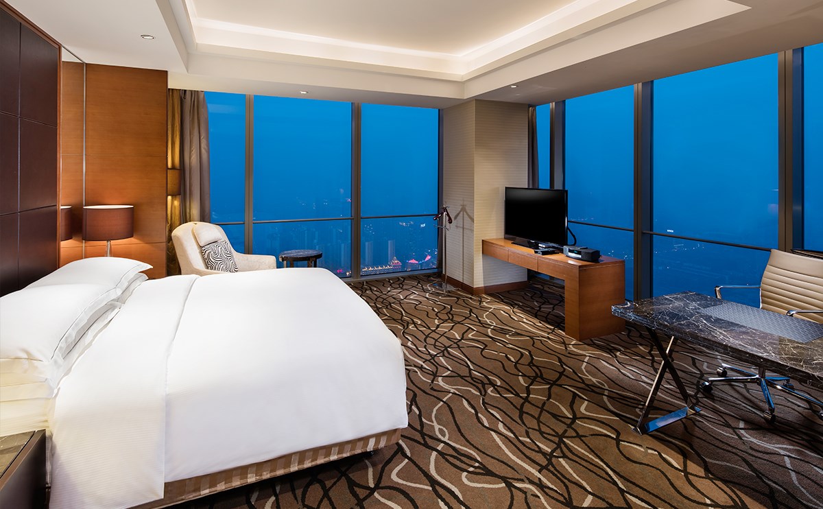 全景落地玻璃窗讓您隨心暢享遠(yuǎn)處的群山和近處的城市美景。房間配有全套智能操控系統(tǒng)和感應(yīng)設(shè)施,私人管家可根據(jù)您的喜好,為您設(shè)定專(zhuān)屬于您的房間氛圍。