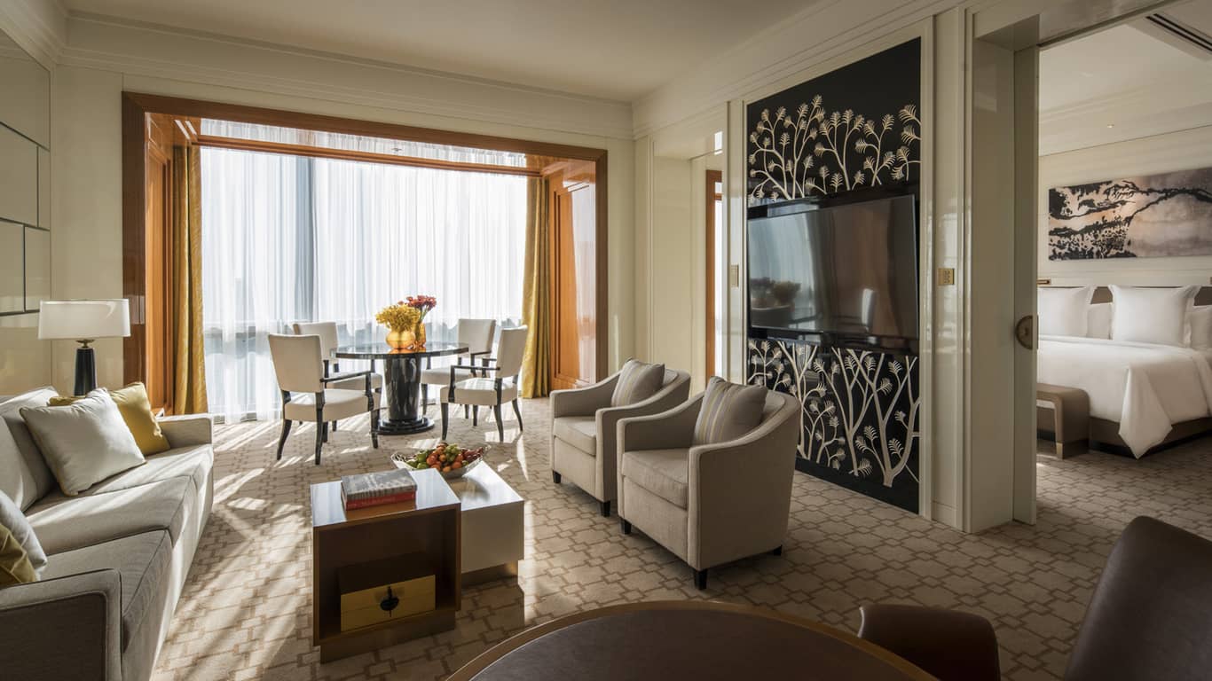 位于 26 層的總統(tǒng)套房面積達(dá) 319 平方米(3,464 平方英尺),是展現(xiàn)尊貴生活品味的華美居所。