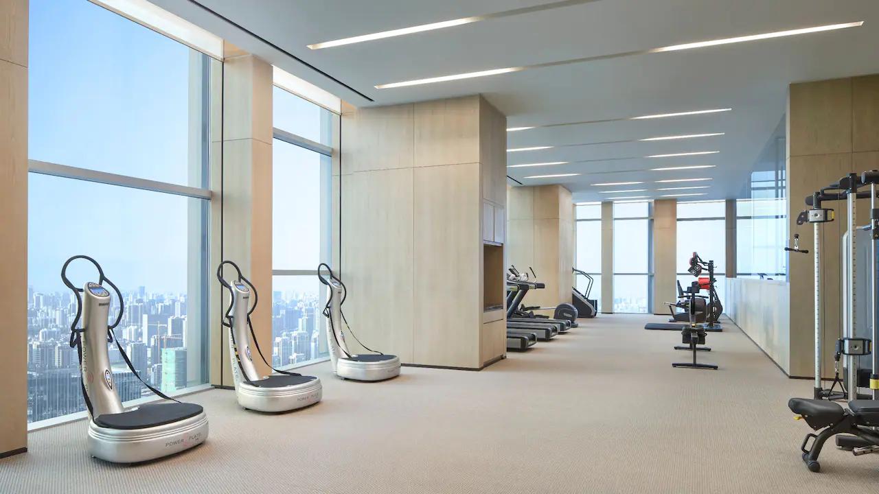 酒店24小時(shí)開(kāi)放的健身中心位于38層,可俯瞰城市美景,并提供專(zhuān)業(yè)教練指導(dǎo), 配備各種高端有氧及重量器械,瑜伽室等;此外還有更衣室、蒸汽和桑拿設(shè)施供客人運(yùn)動(dòng)過(guò)后放松休息。