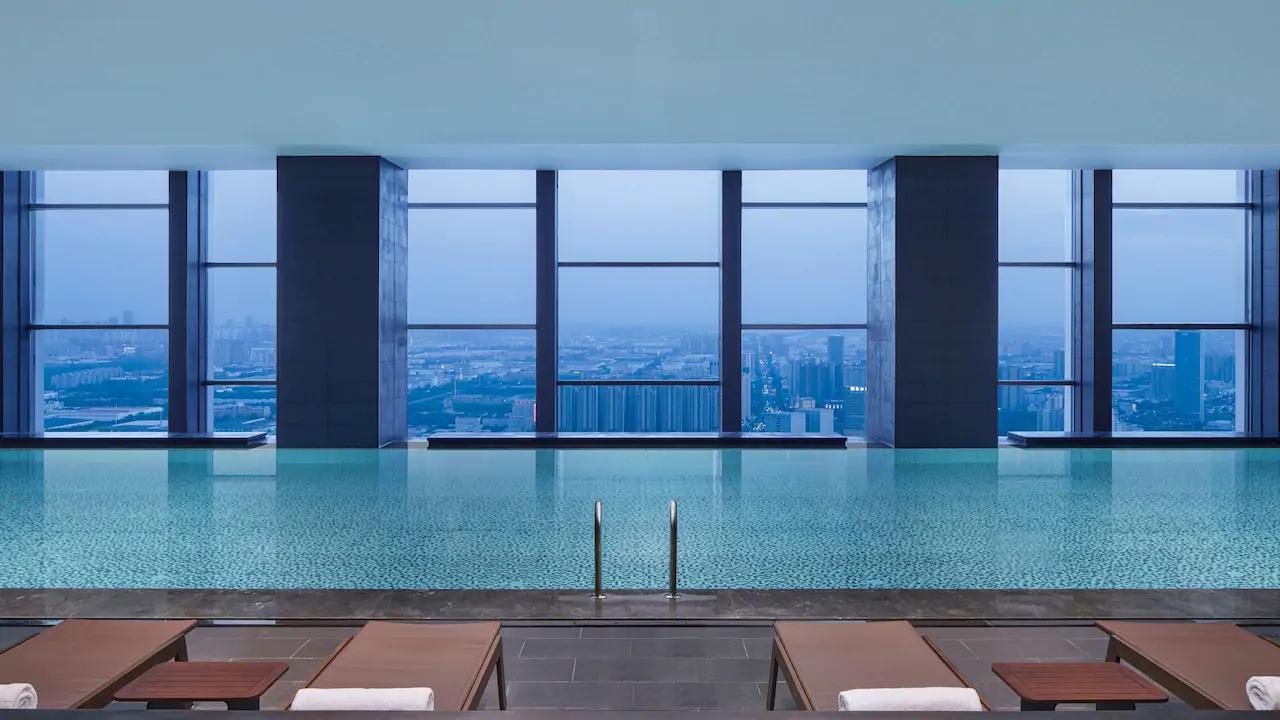 25米室內(nèi)溫控?zé)o邊泳池位于38層,天際美景一覽無(wú)遺。