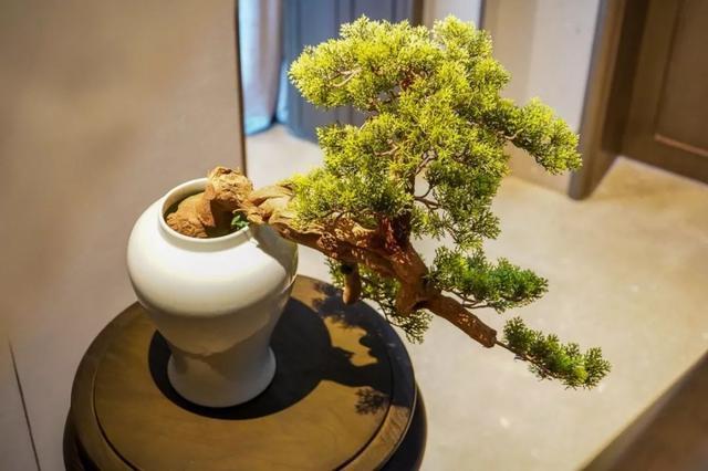 單是大堂,你就能發(fā)現(xiàn)酒店用心所在,月亮門窗前擺放著裝飾綠植,角度不同,視野里所展示的也不同。