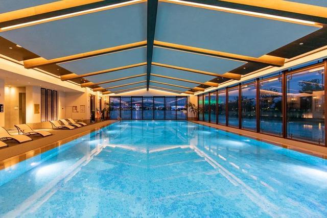 室內(nèi)泳池,270度湖景泳池,玻璃設(shè)計(jì),眨眼看和窗外雪浪湖連為一體,1.1-1.4米的深度,大人孩子都能暢游,景觀以夜晚為盛,燈光、湖景、倒映。
