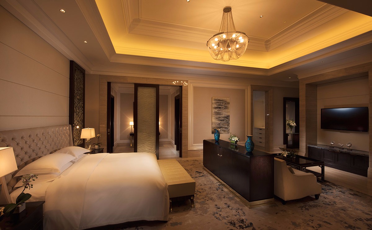 506平方米的總統(tǒng)套房,采用獨(dú)具特色且豪華的布置和鮮明奪目的現(xiàn)代化裝飾。奢尊豪華的主臥和副臥,裝飾氣派的會議廳,典雅尊貴的環(huán)境,是您款待貴客的理想場所。