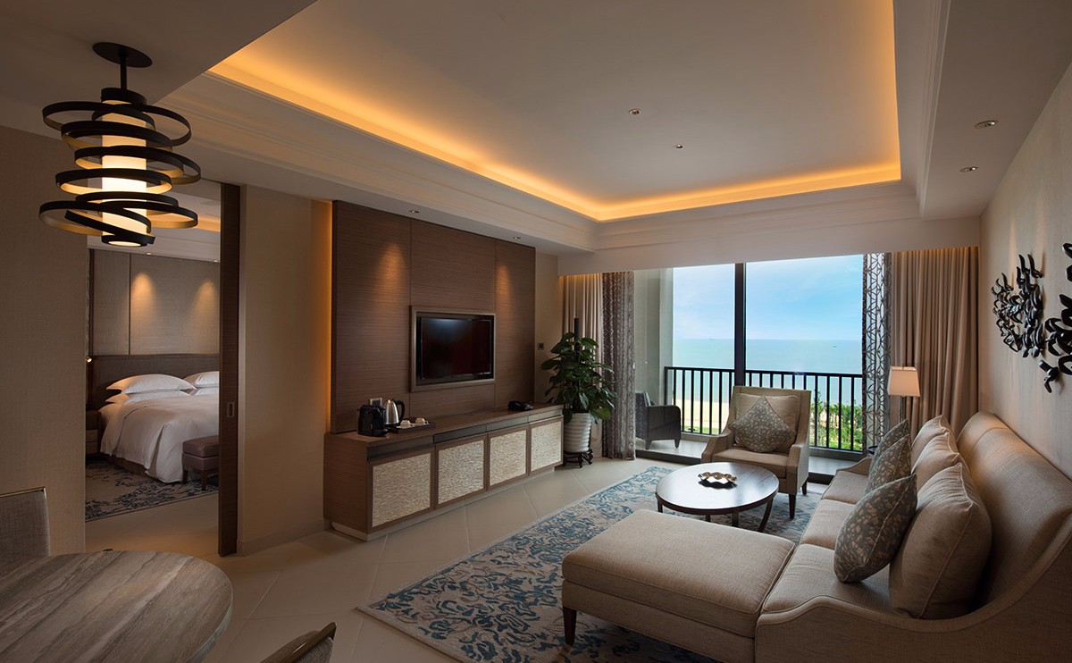海天套房面積77平方米,寬敞的陽臺為您帶來遼闊的視野,蔚藍(lán)的大海,徐徐的海風(fēng),讓您感受愜意無比的生活。