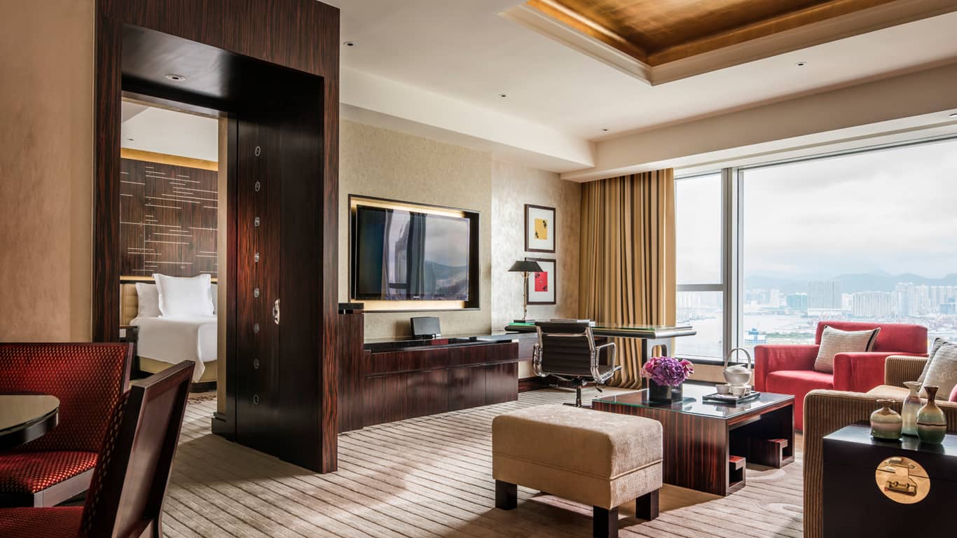 開揚(yáng)寬闊的落地大窗讓您飽覽城市、維多利亞港、九龍半島和山頂?shù)膭?dòng)人景致。