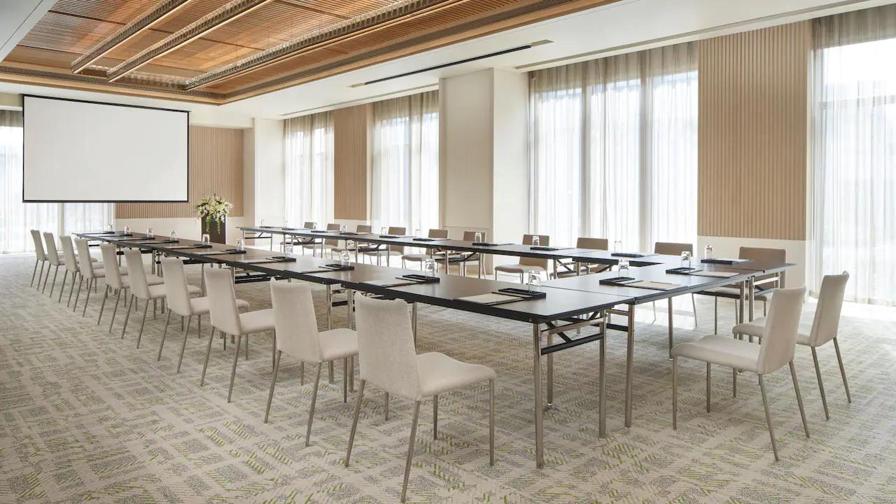 酒店的大宴會(huì)廳層高8米,可容納60桌宴席,配有先進(jìn)的視聽(tīng)設(shè)備包括5.6米*10 的 嵌入式LED屏,場(chǎng)地可進(jìn)入車(chē)輛; 總面積達(dá)648平方米的沙龍廳配有全景落地窗,引入充沛的自然光線。
