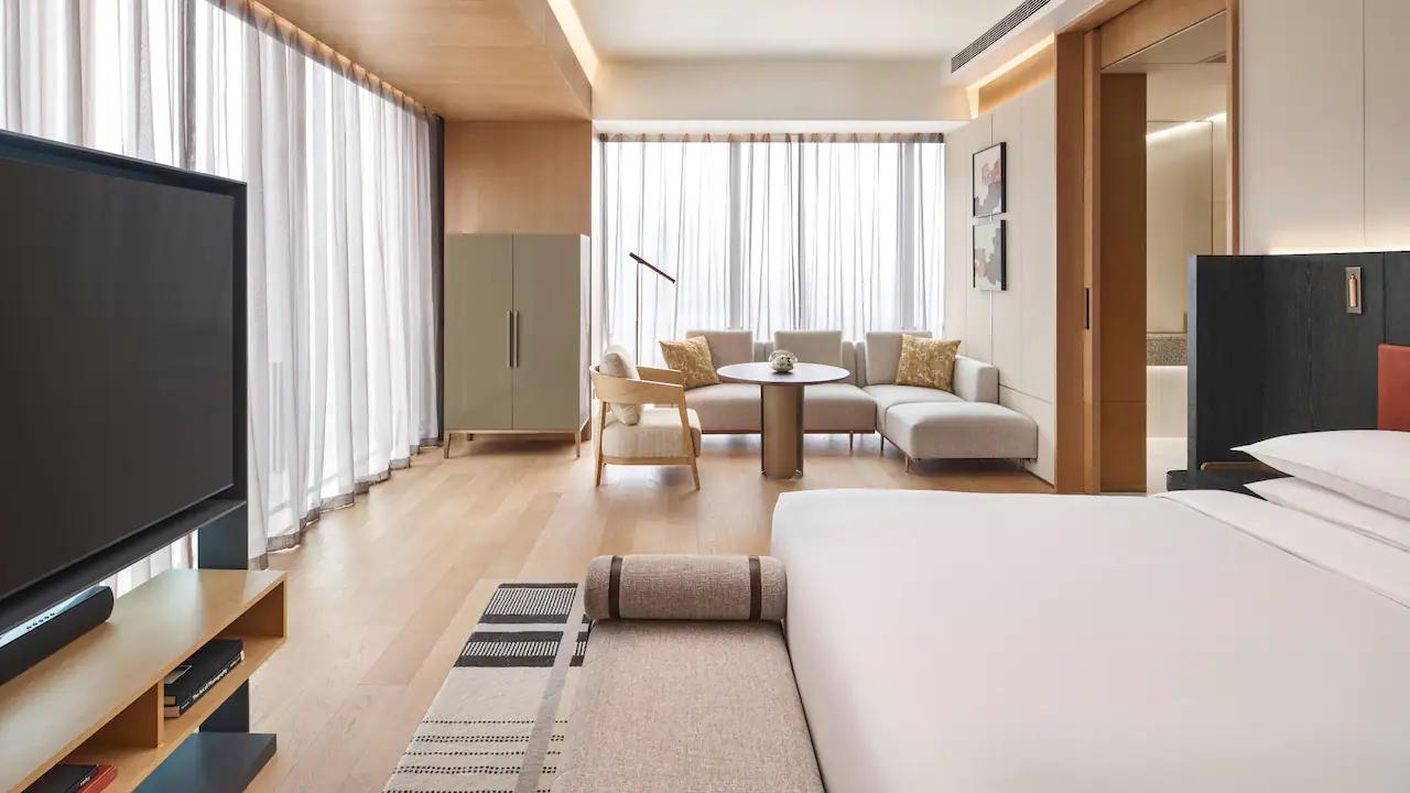 68平方米的凱悅套房,配有全景落地窗以及獨(dú)立起居室,令工作與休閑輕松轉(zhuǎn)換。
