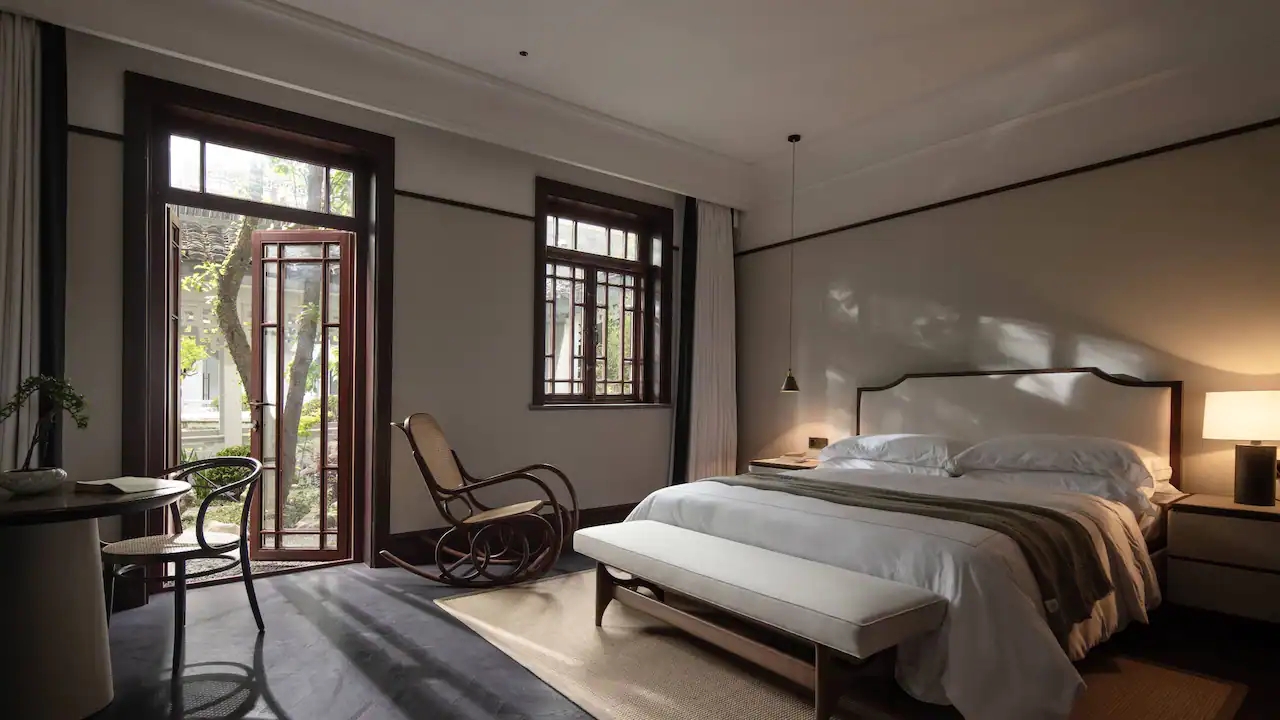 現(xiàn)代感性為秋水別墅 11 間經(jīng)過精心修復的套房帶來了全新的視角。