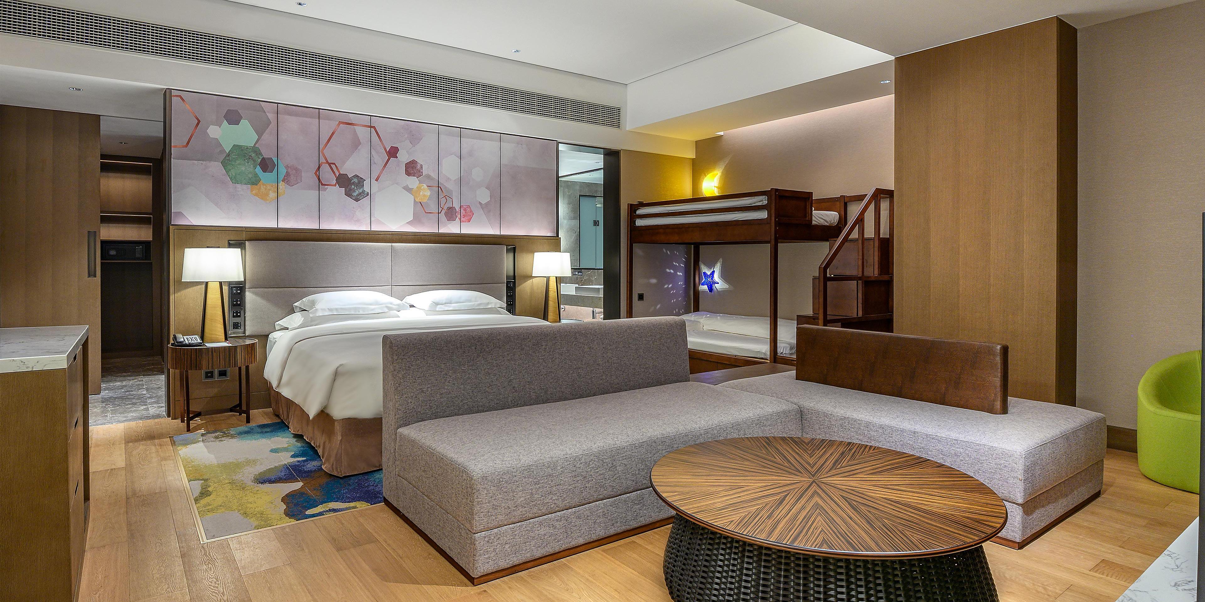 酒店擁有320間時尚雅致的客房及套房,超大的全景落地玻璃窗可盡覽銀灘一線景致。