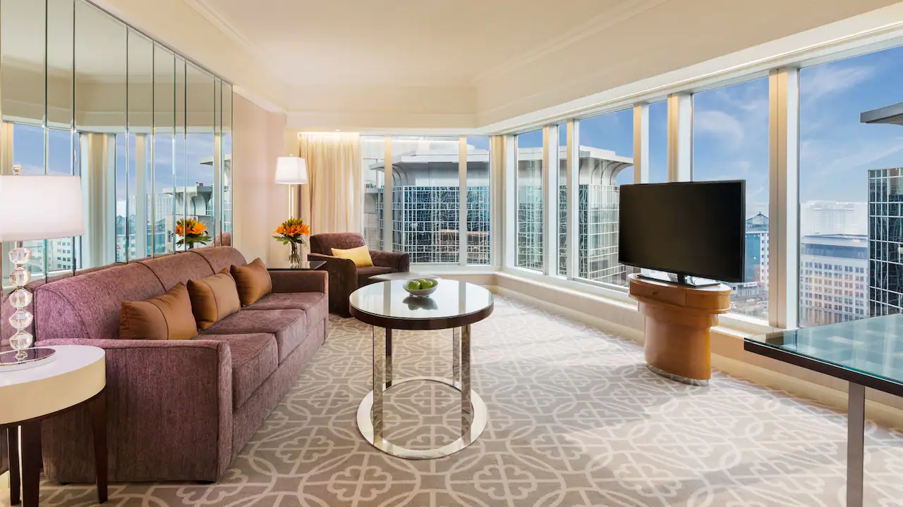 套房寬敞豪華,達87平方米, 配備一間獨立的客廳、兩個獨立的臥室。各項設(shè)施一應(yīng)俱全,舒適寧謐,別具匠心的雙臥室布局、獨立的起居空間以及完善配套的設(shè)施,為家庭或商務(wù)出行帶來私人府邸式入住體驗。