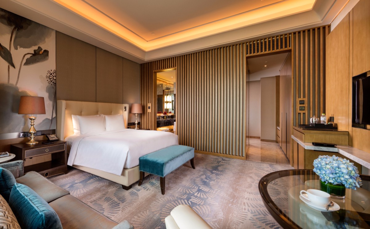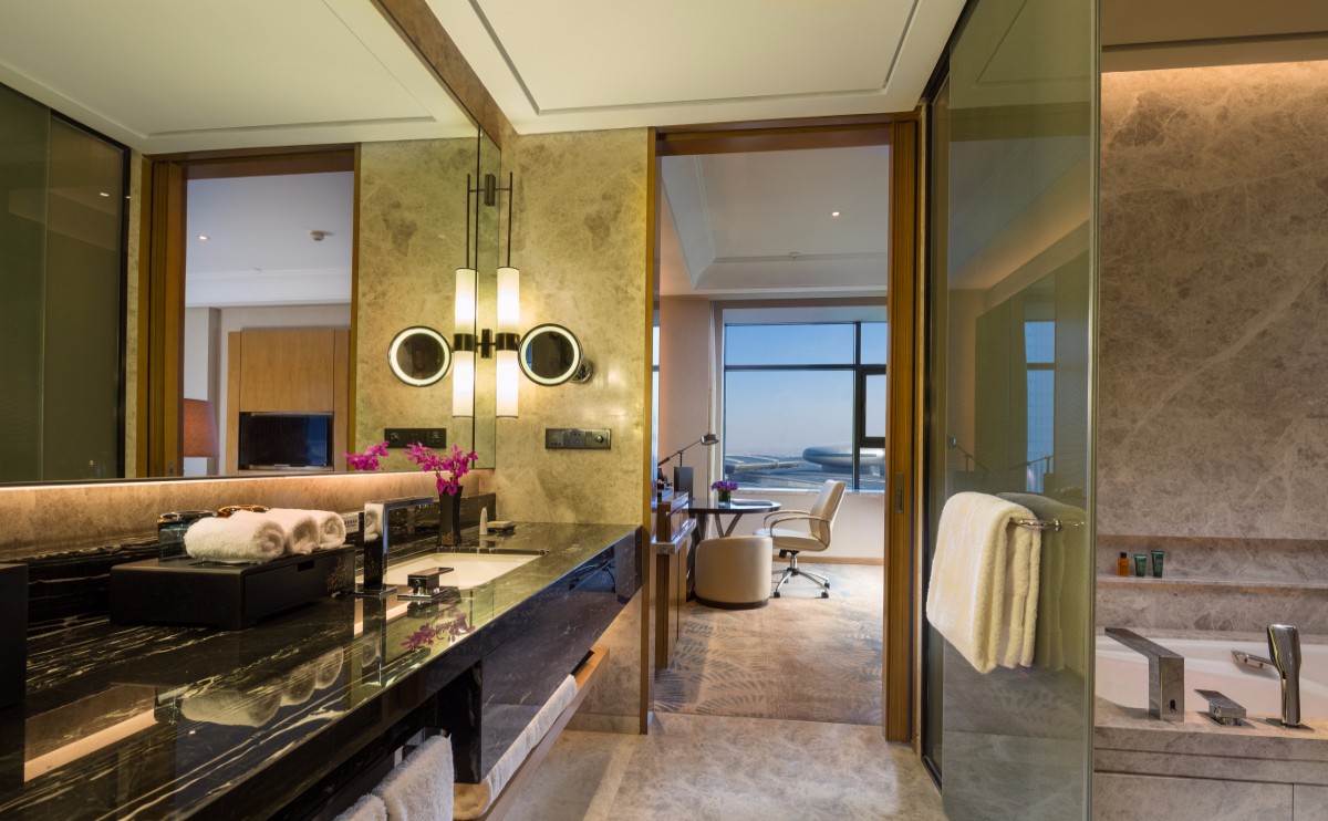 酒店共有383間寬敞舒適的客房包括33間各式套房。面積從45平方米至200平方米不等,客房內(nèi)配備42寸液晶平板電視、華麗舒適的床具、功能齊全的辦公區(qū)域及高速寬帶網(wǎng)絡(luò),衛(wèi)浴間內(nèi)淋浴、浴缸、衛(wèi)生間獨立設(shè)置,豪華套房內(nèi)配備智能馬桶墊、全自動嘉諾007特工按摩椅及膠囊咖啡機(jī),讓您在旅途中充分休息并放松身心。入住行政樓層還可尊享快速辦理入住及離店手續(xù),享受行政酒廊內(nèi)提供的免費早餐、全天咖啡及茶點供應(yīng),傍晚“歡樂時光”酒水暢飲等待遇。