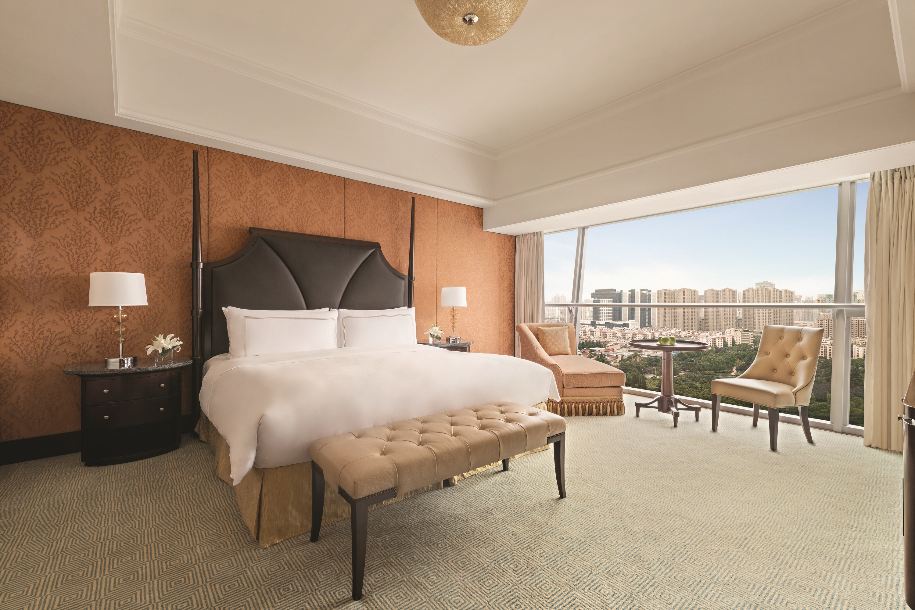 酒店擁有393間設(shè)計(jì)獨(dú)特的豪華客房及套房,客房別具氣勢的落地式長窗,讓您飽覽城市如畫的風(fēng)光和酒店的園林景致。