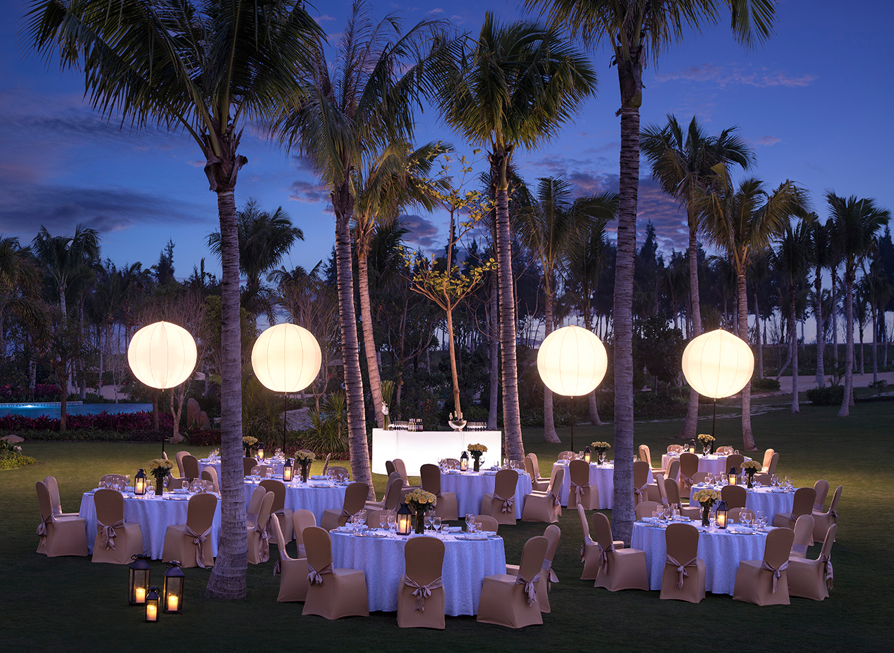 海邊婚禮可選擇宴會(huì)廳的盛大婚宴或是海邊親密聚會(huì),亦或是黃昏時(shí)分觀景平臺(tái)上的浪漫儀式。