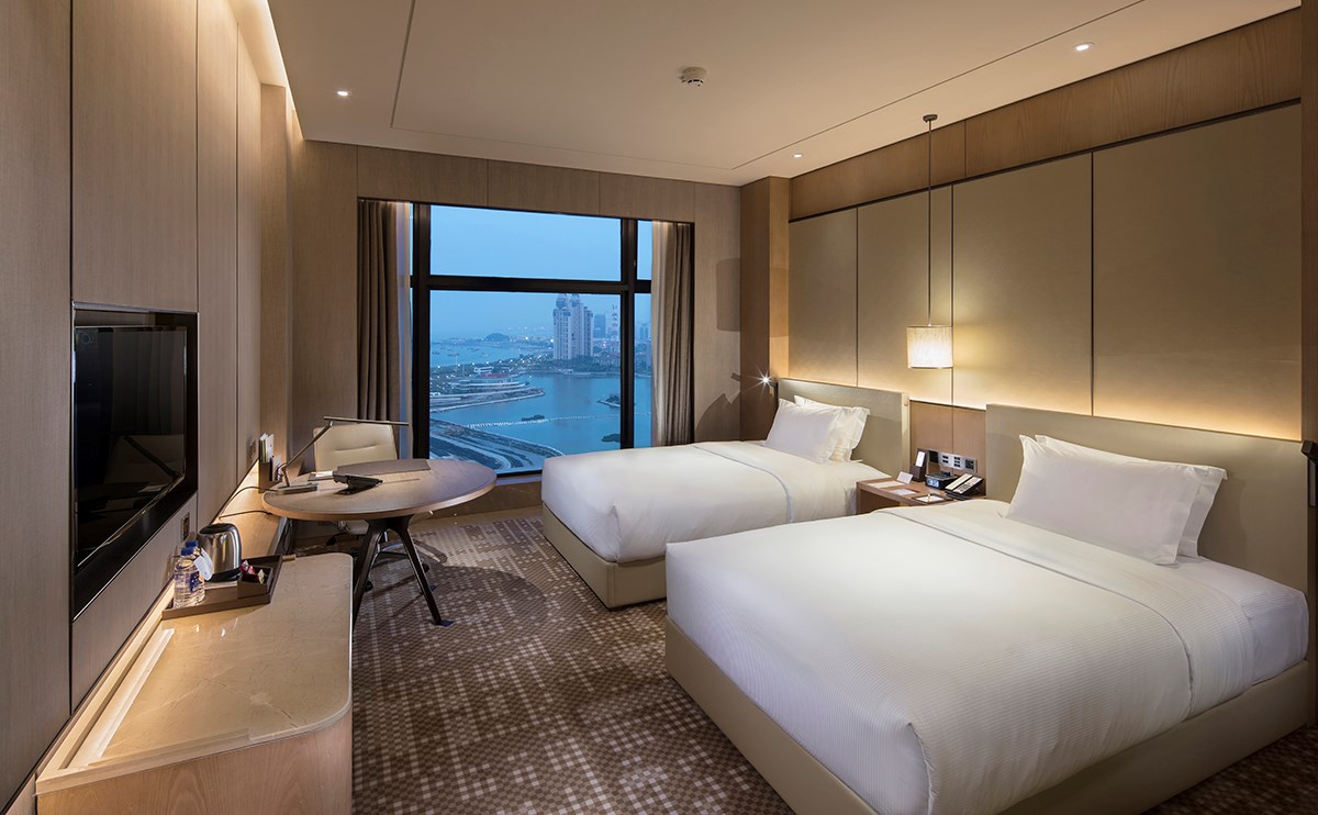酒店擁有301間豪華舒適的客房與套房,高達(dá)30%的房間坐擁海景或湖景,超寬視野的落地窗讓城市美景盡收眼底。