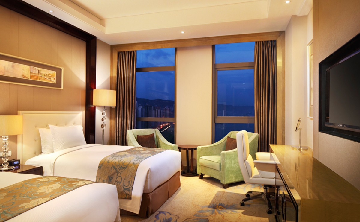 酒店共有243間客房,賓客可以享受舒適的設(shè)施,寬敞的工作區(qū),高速無(wú)線網(wǎng)絡(luò)接入,高品質(zhì)室內(nèi)用品以及透過(guò)全景落地窗欣賞到的山和長(zhǎng)江美景。