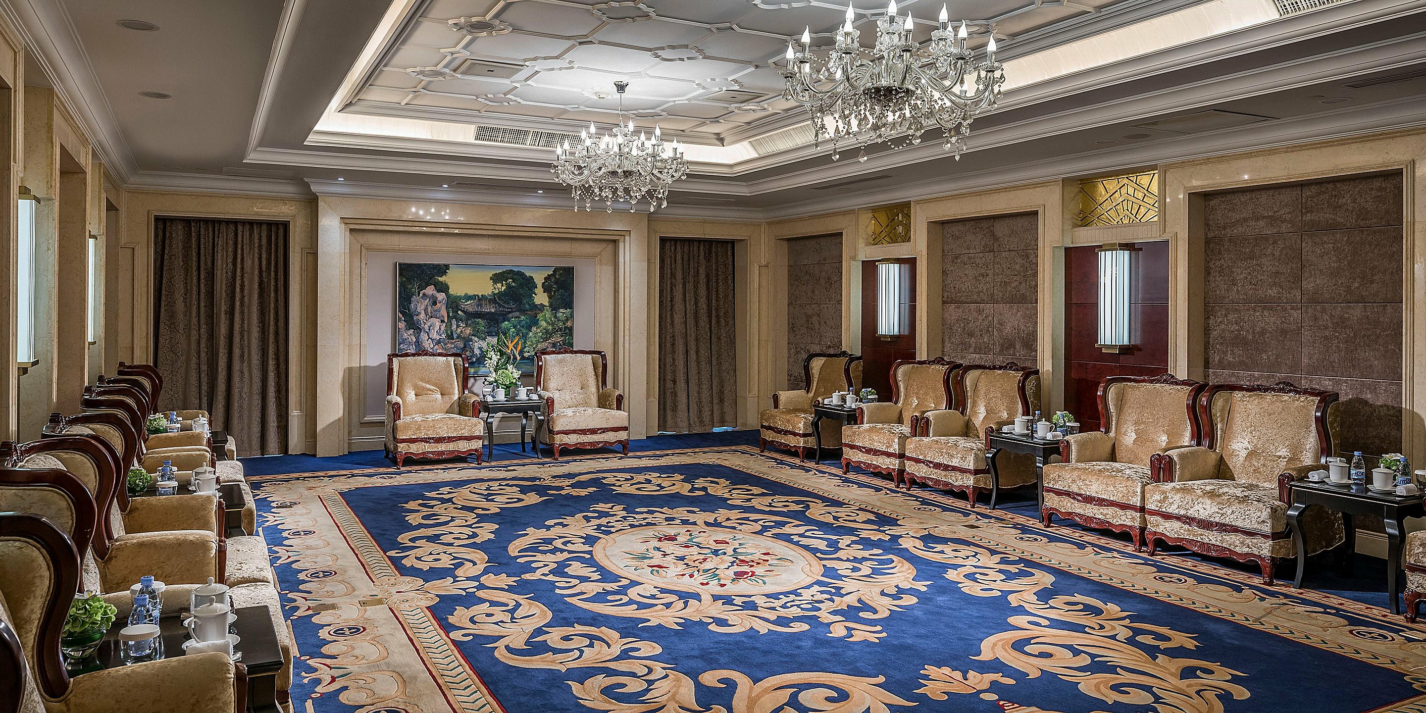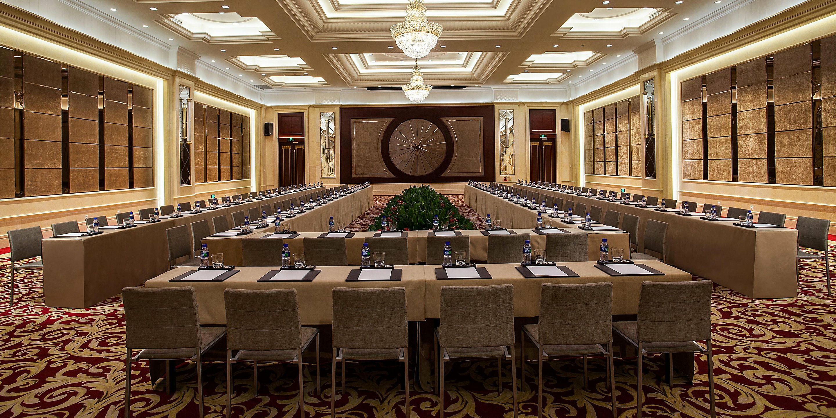 武漢洲際酒店會(huì)議室體現(xiàn)了優(yōu)雅裝飾與現(xiàn)代科技的完美結(jié)合。