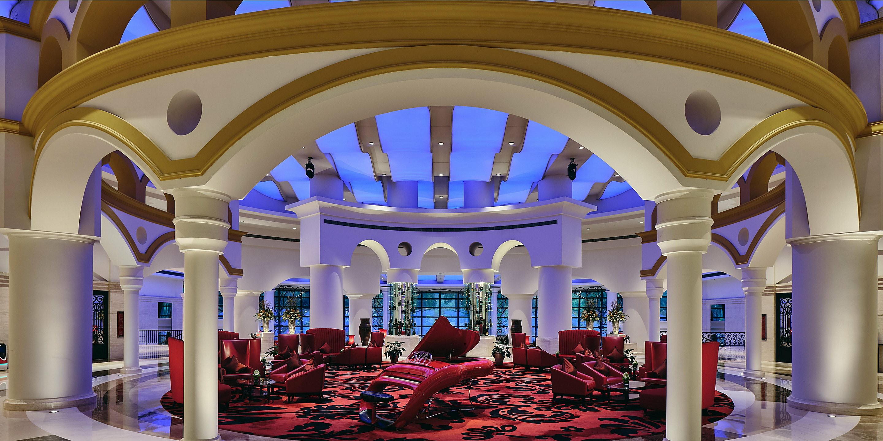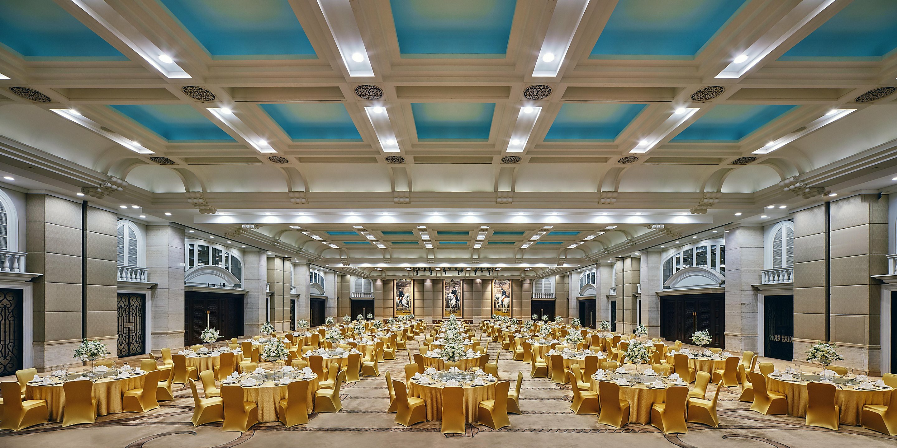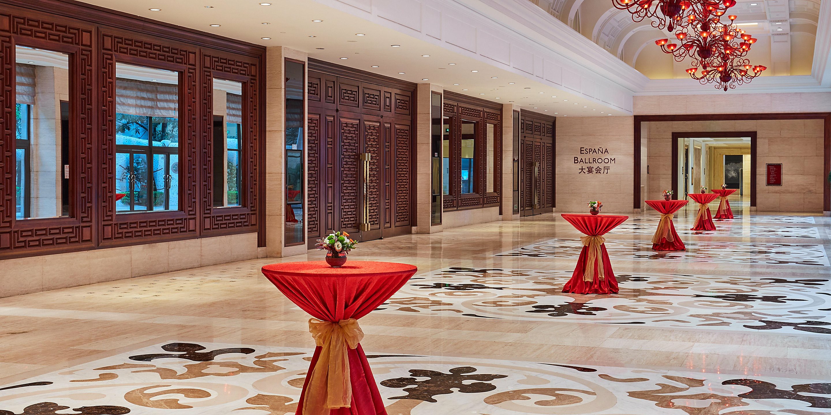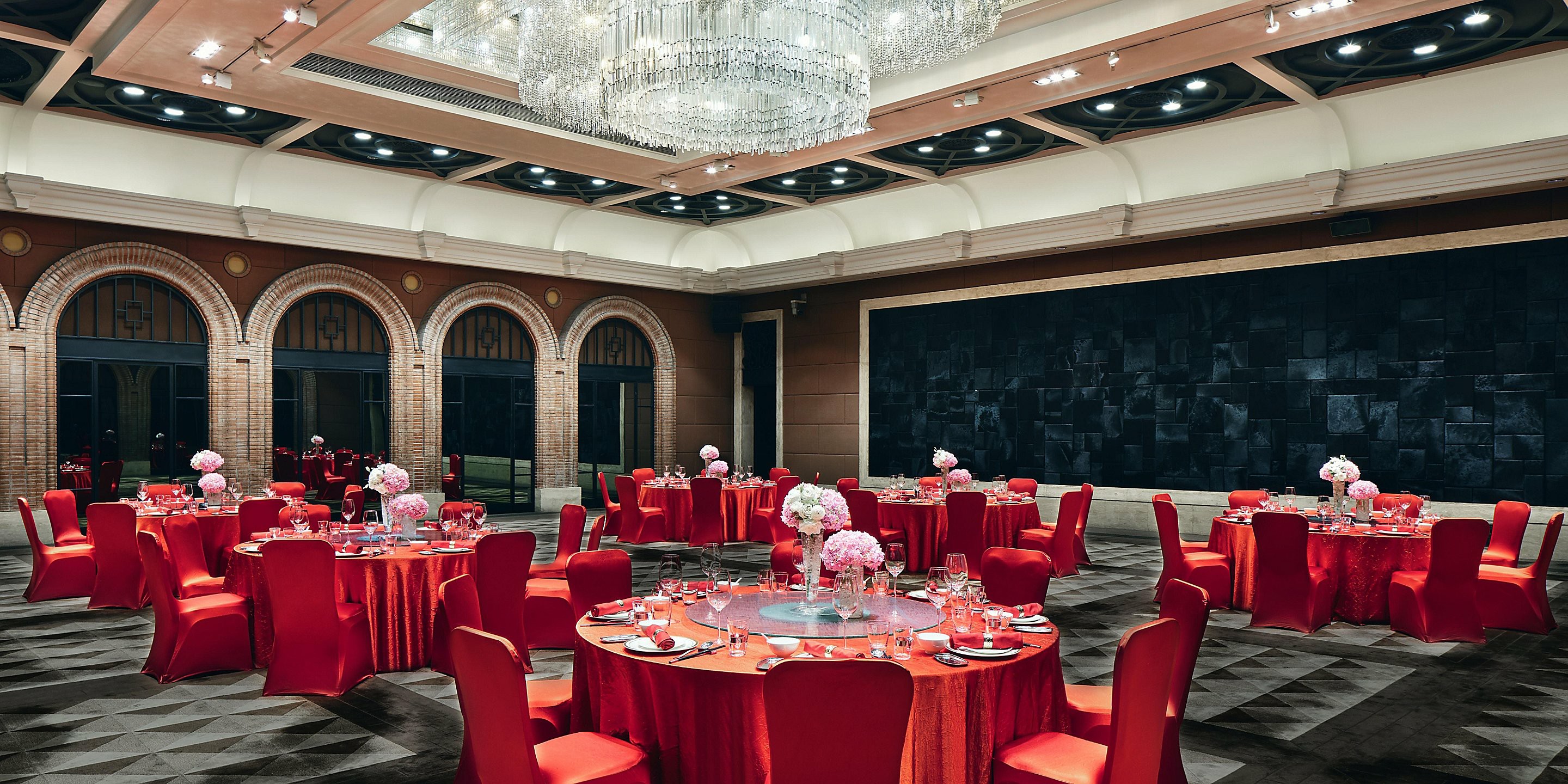 功能完善的宴會(huì)設(shè)施均位于酒店一層,其中1560平方米的無(wú)柱西班牙大宴會(huì)廳挑高7.5米,大氣磅礴,并配備超寬自動(dòng)坡式入口。