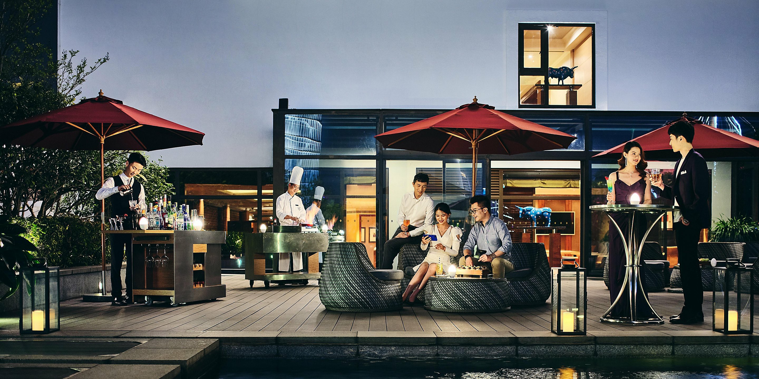 俱樂(lè)部大堂同時(shí)供應(yīng)早餐、下午茶、歡樂(lè)時(shí)光和夜宵,您可一邊品嘗美食一遍飽覽南山區(qū)與香港令人嘆為觀止的景觀。