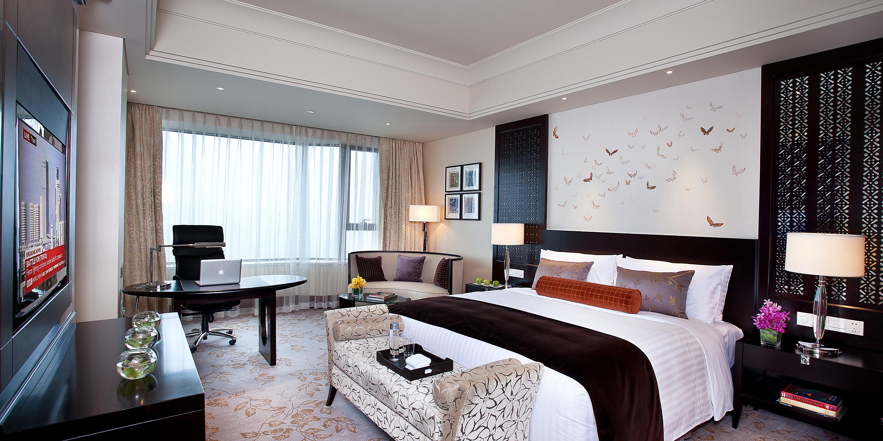 酒店的每處細(xì)節(jié)都彰顯著時(shí)尚典雅,以刺繡為亮點(diǎn)的房間裝飾處處洋溢著江南風(fēng)情,為現(xiàn)代奢華設(shè)定了新標(biāo)準(zhǔn)。