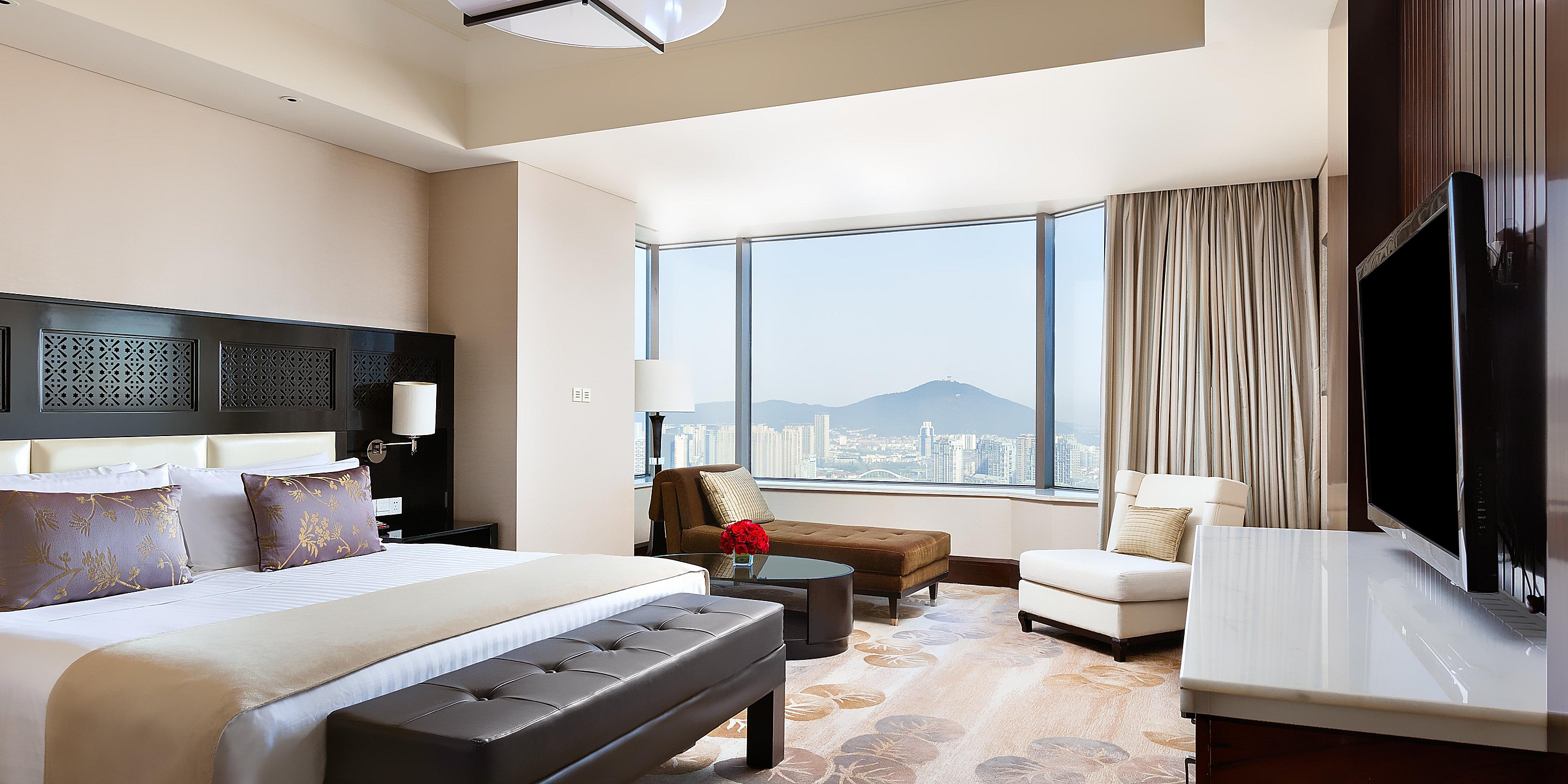 寬敞、高雅的套房配合全落地玻璃窗,可以俯瞰無(wú)錫城市景觀和京杭大運(yùn)河美景。