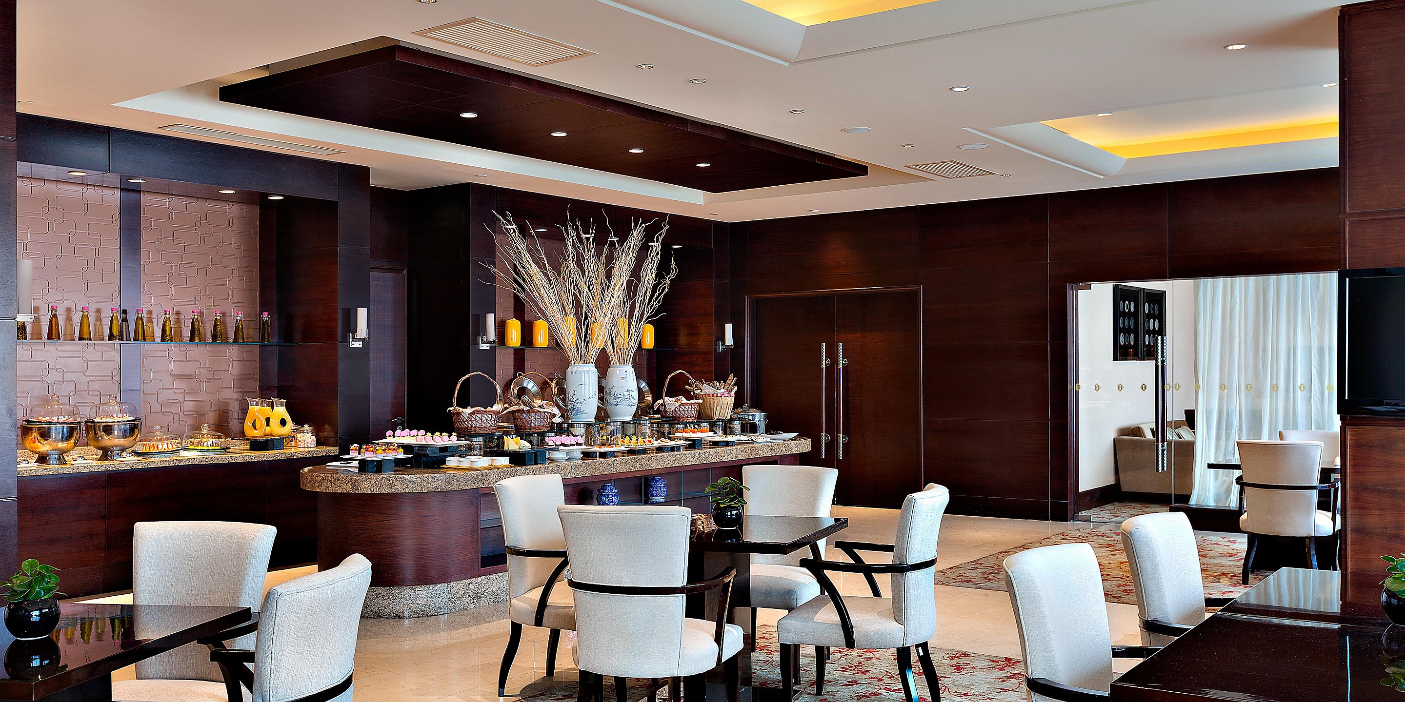 15個(gè)開(kāi)放式互動(dòng)廚房,超過(guò)150多種的美食品種,融合東西方元素的包房,與大廚的交流互動(dòng),為您詮釋別樣的用餐體驗(yàn)。