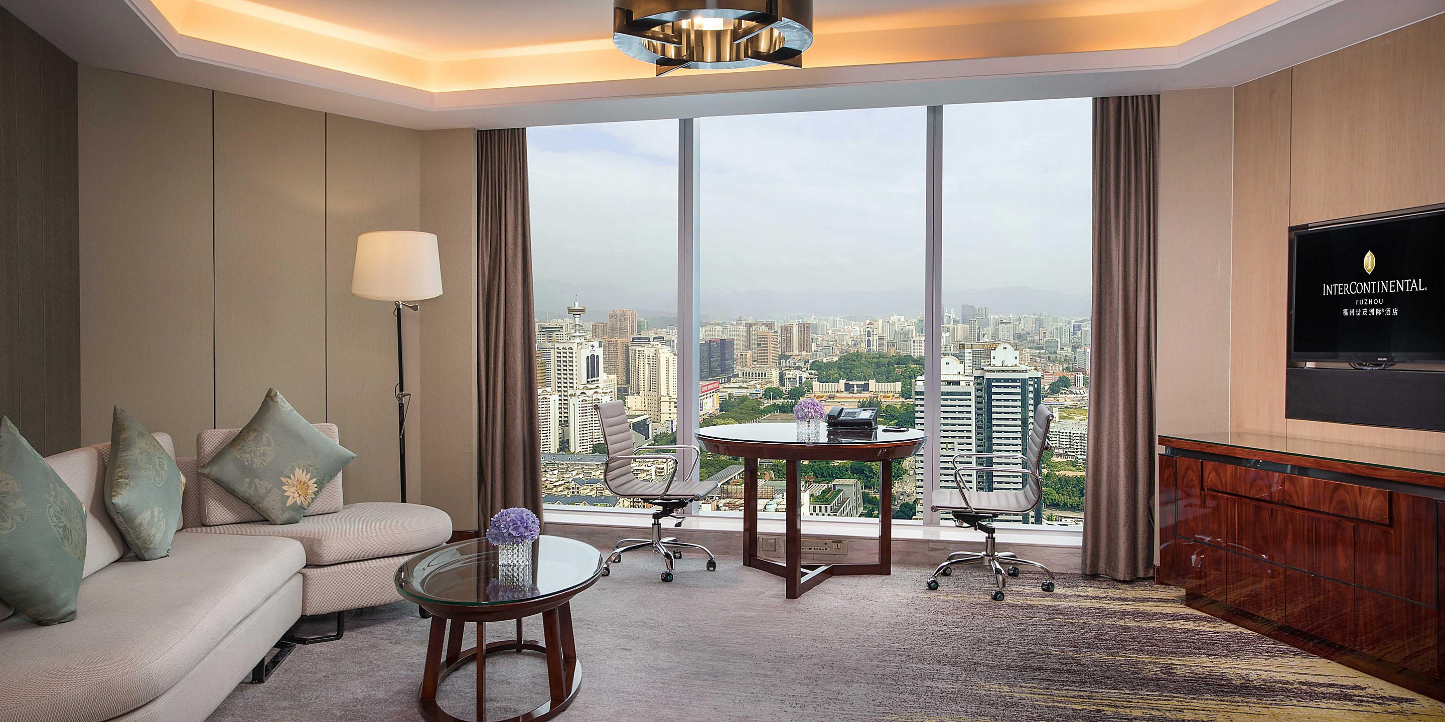 福州世茂洲際酒店建筑樓高58層,優(yōu)越的地理位置和獨特的建筑風格,讓酒店每間客房均擁有優(yōu)越的觀景視角,寬大的落地窗可一覽福州秀美的城景。