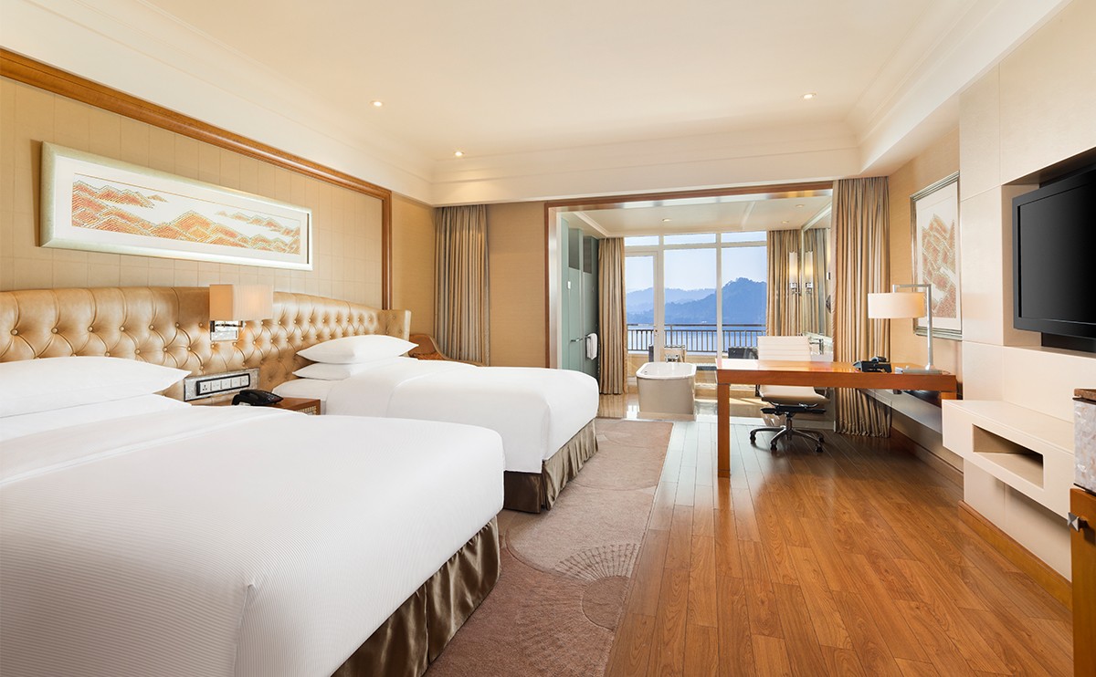 348間設(shè)計(jì)時(shí)尚優(yōu)雅的客房及套房,貼心的客房設(shè)施以及寬敞的熱帶雨林淋浴間,大多數(shù)客房配置私人陽(yáng)臺(tái),可盡享千島湖的碧水青山,讓您盡情放松,煥發(fā)活力。