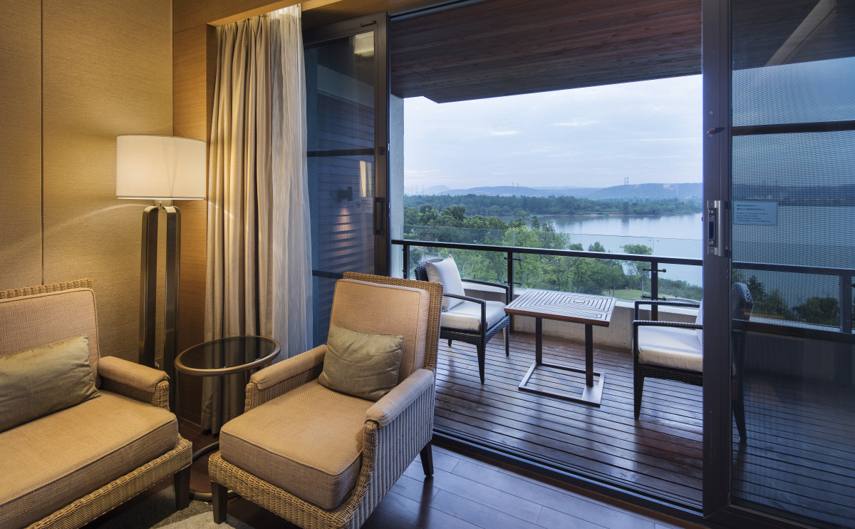 515間豪華客房與套房均設(shè)有私人陽臺,透過落地玻璃窗還能飽覽嚴(yán)西湖撼動人心的秀美景致。部分套房中的獨(dú)立起居和用餐區(qū),=讓您能夠輕松、舒適地工作和休息。