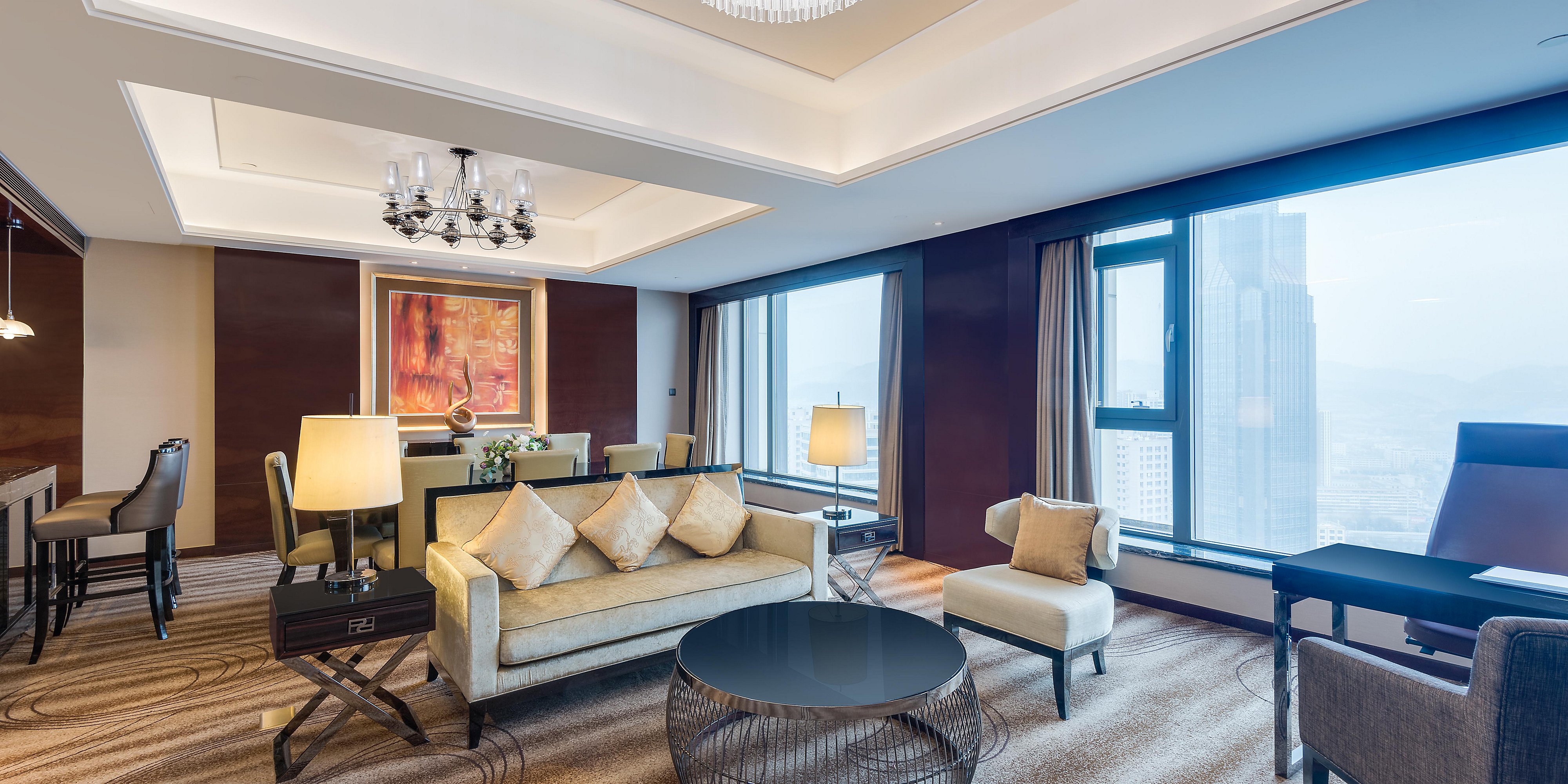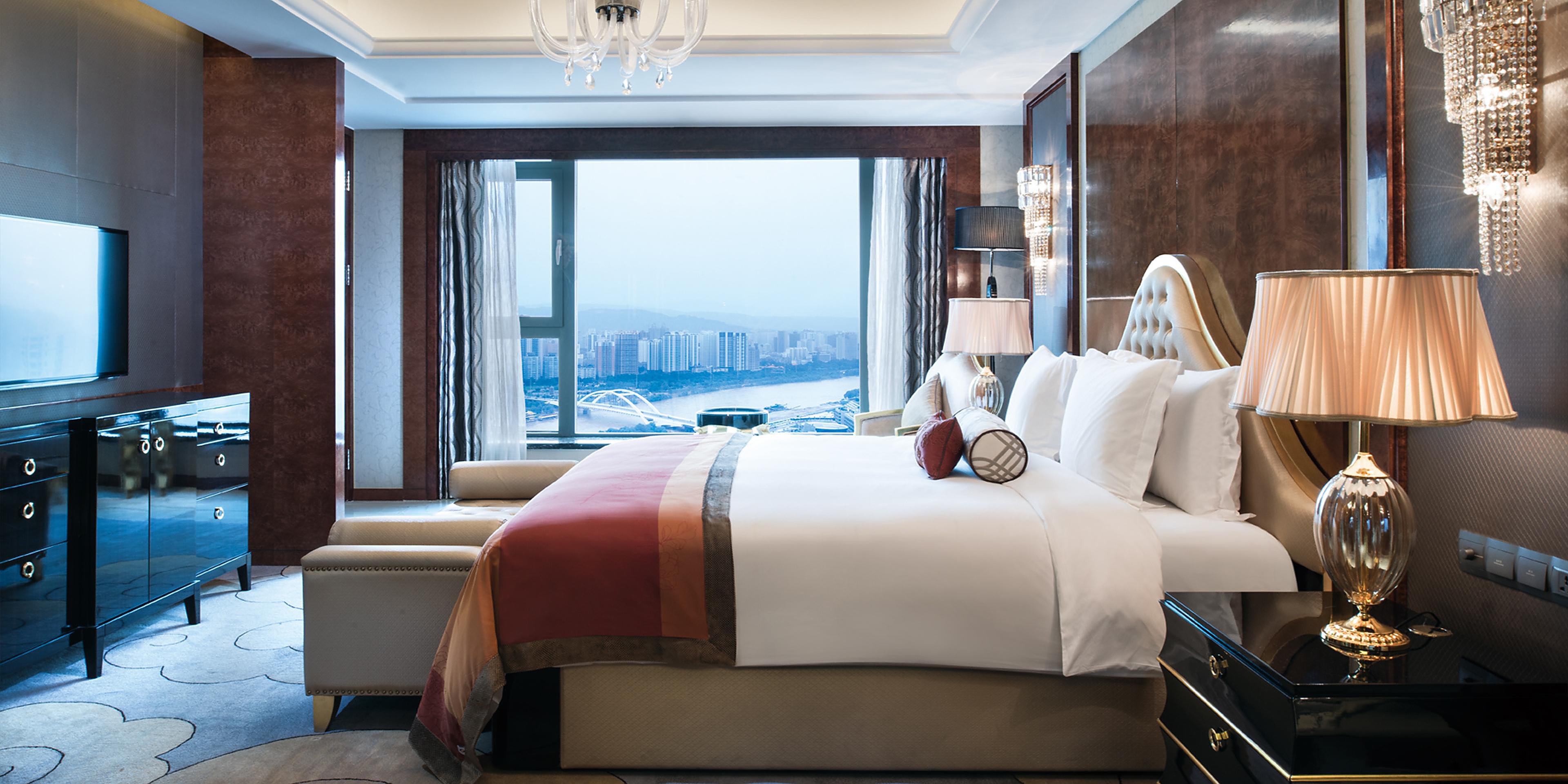 酒店建筑氣勢恢宏、裝飾靈動而秀美,擁有440間舒適與品位兼具的客房及套房,臨窗均可飽覽黃河美景,視野開闊。