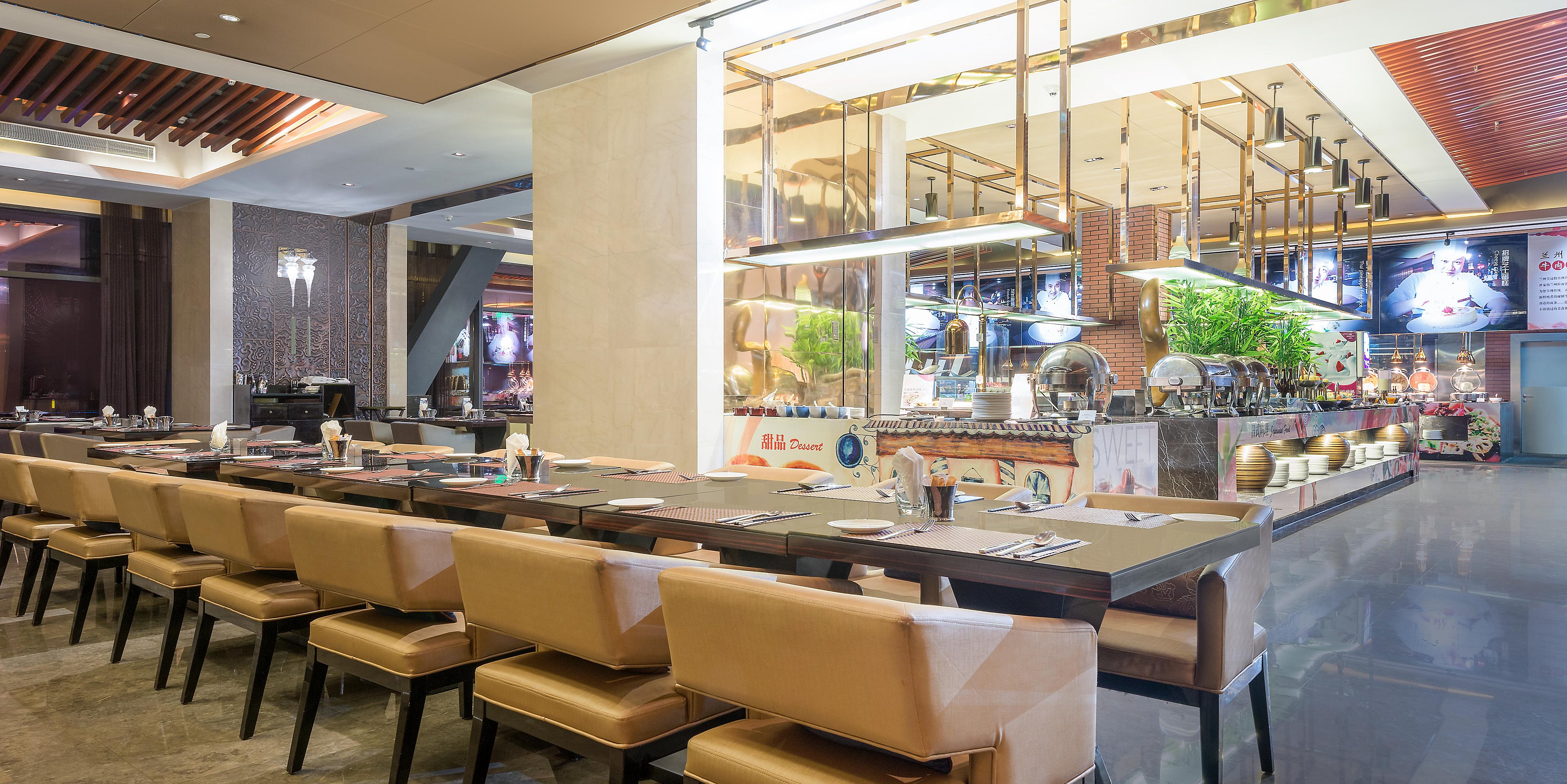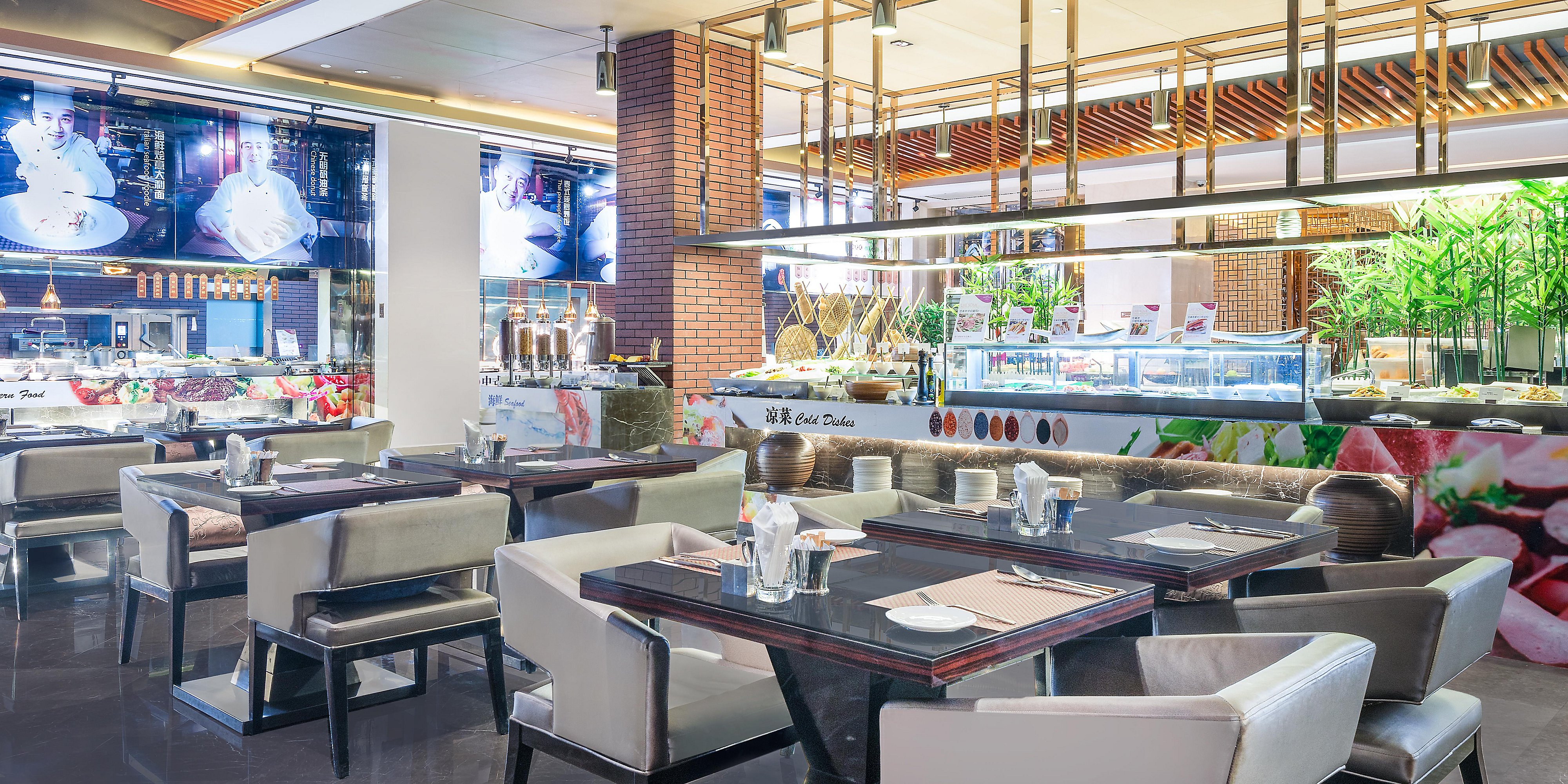 位于酒店一樓的河畔咖啡廳時尚雅致,設(shè)有182個餐位,提供環(huán)球自助美食,而且隨時為您用心烹制品種多樣的特色零點(diǎn)。
