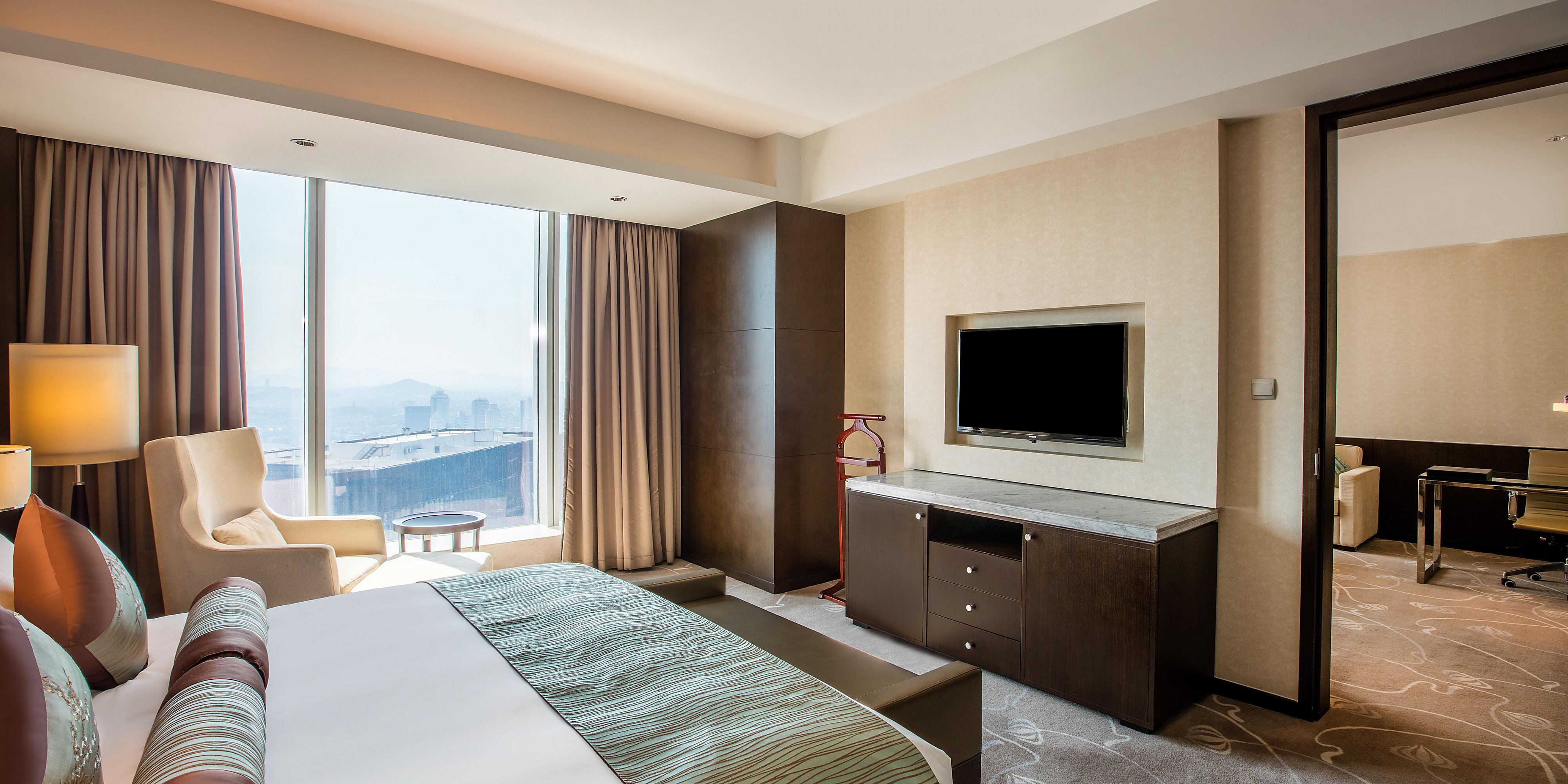酒店擁有453間典雅舒適的客房和豪華套房,均配備高速無線網絡、液晶平板電視、迷你吧及視野開闊的大落地窗。