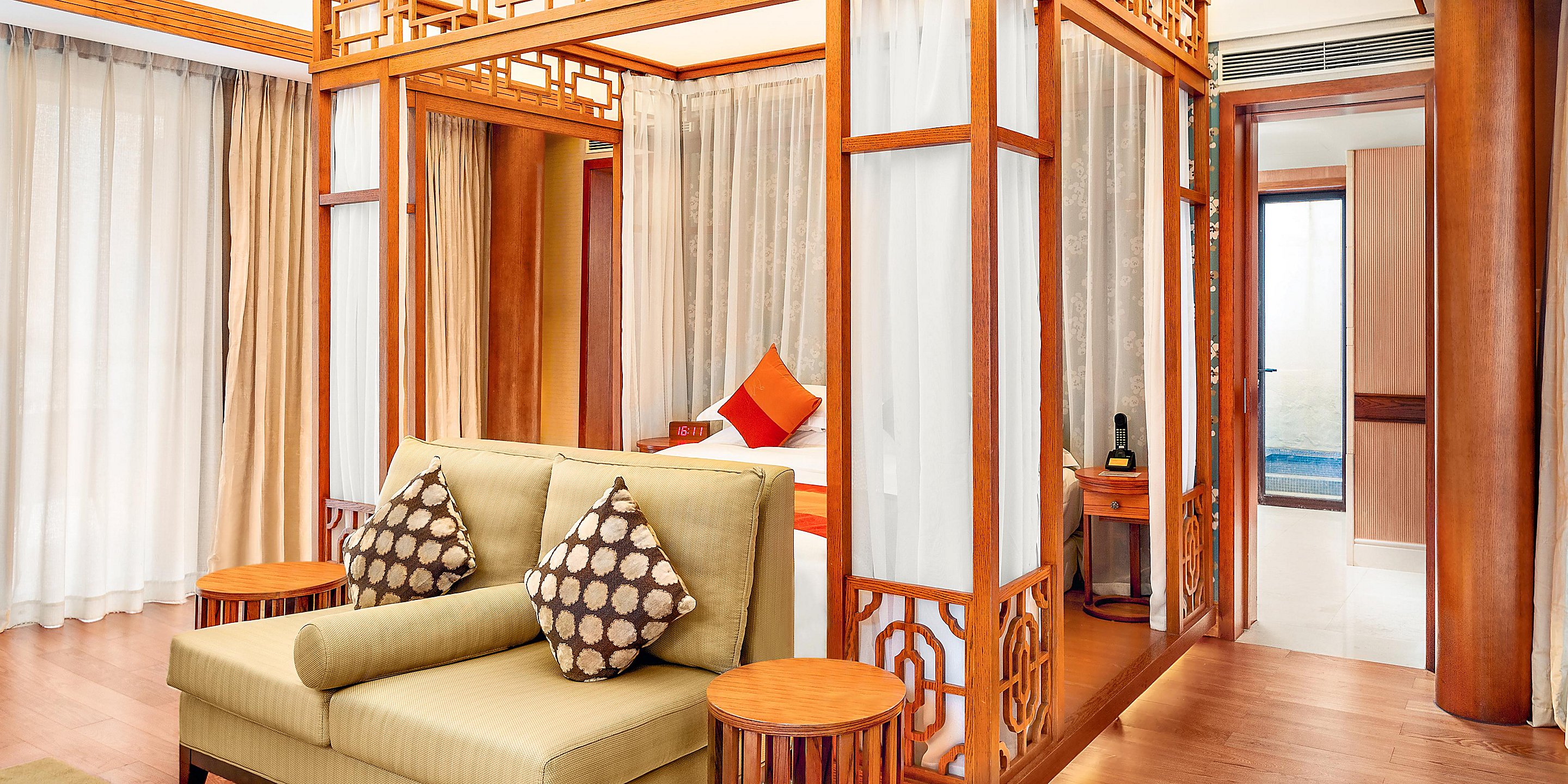 別墅區(qū)域設(shè)有1-3間臥室,其設(shè)計風(fēng)格完關(guān)融合了中國古典建筑和現(xiàn)代建筑風(fēng)格,所有房間配有專屬私人管家、專用溫泉泡池及休息涼亭。