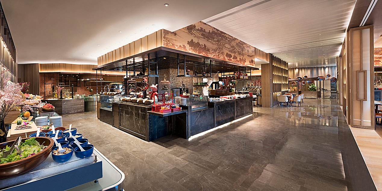 鮮艷全日餐廳將東西方飲食文化完美交融,設(shè)有多個(gè)開放式烹飪臺(tái),現(xiàn)場(chǎng)為您烹制精選時(shí)令食材。特設(shè)營(yíng)運(yùn)至深夜的夜宵面檔,呈奉中式夜宵的魅力。