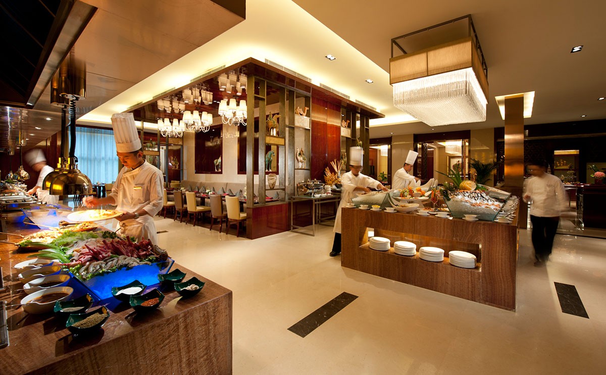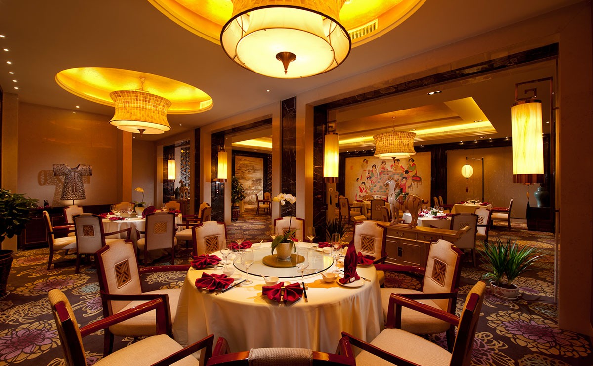 酒店提供傳統(tǒng)陜西美食、粵菜、川菜等,并設(shè)有十三間包廂,讓您盡享私密用餐環(huán)境。大廳的唐人宮樂(lè)圖,描寫后宮嬪妃,圍坐于一張巨型的方桌四周,有的品茗,也有的在行酒令,中央四人,則負(fù)責(zé)吹樂(lè)助興。