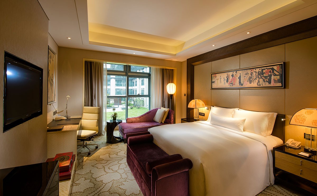 酒店擁有城中大面積的客房,面積自43平方米起。房間配備獨(dú)立的超大浴缸及玻璃隔斷熱帶雨林式淋浴,1.8米X2米希爾頓定制大床搭配金可兒床墊,液晶電視,及瑰珀翠品牌沐浴用品套裝。