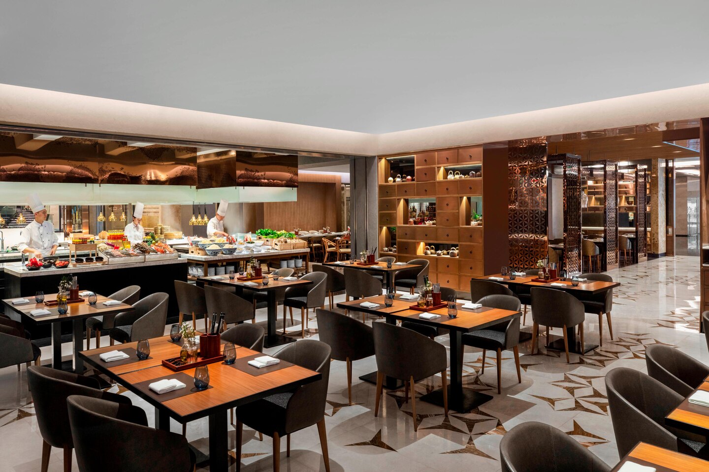 貢廚餐廳是備受酒店客人和廈門當(dāng)?shù)厝藲g迎的理想去處,多功能開放式廚房將廚師與美食愛好者緊緊維系在一起。這里是品嘗國際當(dāng)?shù)靥厣朗车纳霞讶ヌ帲?yīng)自助餐和自選菜單。