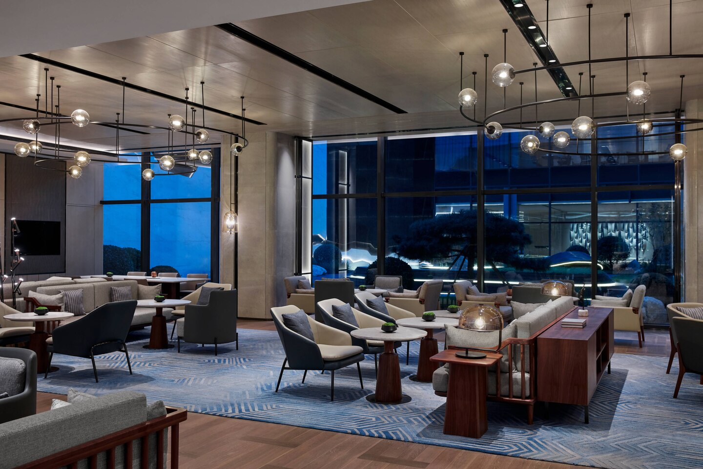大堂酒廊全天候為賓客提供精選小食及各類風(fēng)味飲品,透過全景落地窗欣賞窗外中庭園林禪意美景。