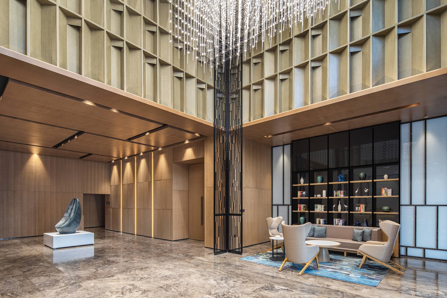 酒店大堂以簡潔明快的裝飾線條、多重質(zhì)感的材質(zhì)使用搭配現(xiàn)代風(fēng)格的家具和燈飾,帶來一種簡單率真的體驗(yàn)感。