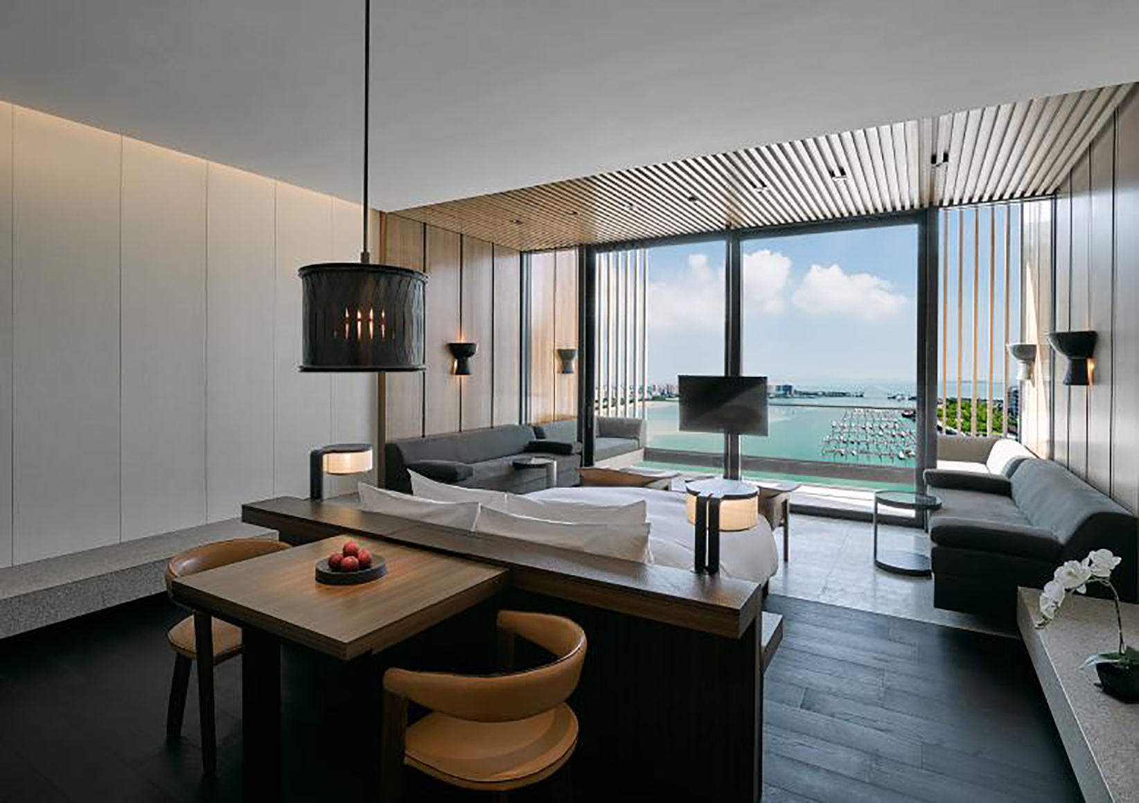 酒店客房以廈門傳統(tǒng)建筑工藝為基礎,同時融合當代時尚元素。