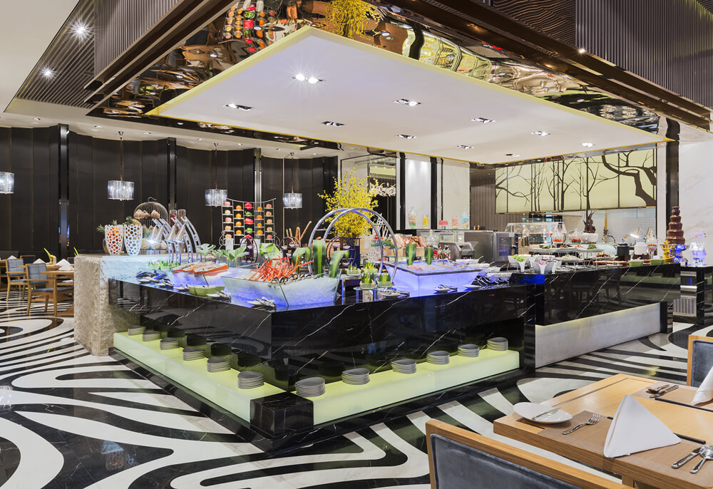 美食匯全日餐廳全天提供早餐、中餐、晚餐單點菜肴以及中西融合的自助早/晚餐。