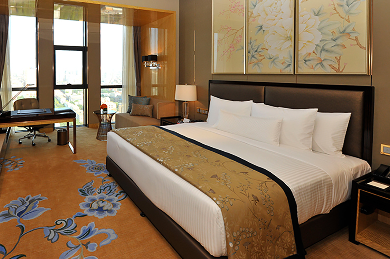 富有東方風(fēng)情的豪華房內(nèi)配備一應(yīng)俱全的客房設(shè)施。