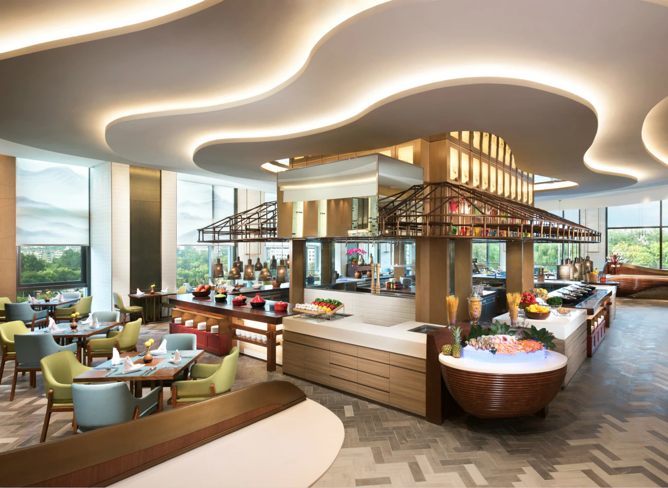 酒店除了擁有濟南最大、最豪華的客房與套房外,您還可在這里找到令人愉悅的用餐場所,如以濟南特色72淡水泉名字命名的泉水咖啡廳,其現(xiàn)場烹飪臺供應(yīng)各種美味的當?shù)嘏c國際菜肴。