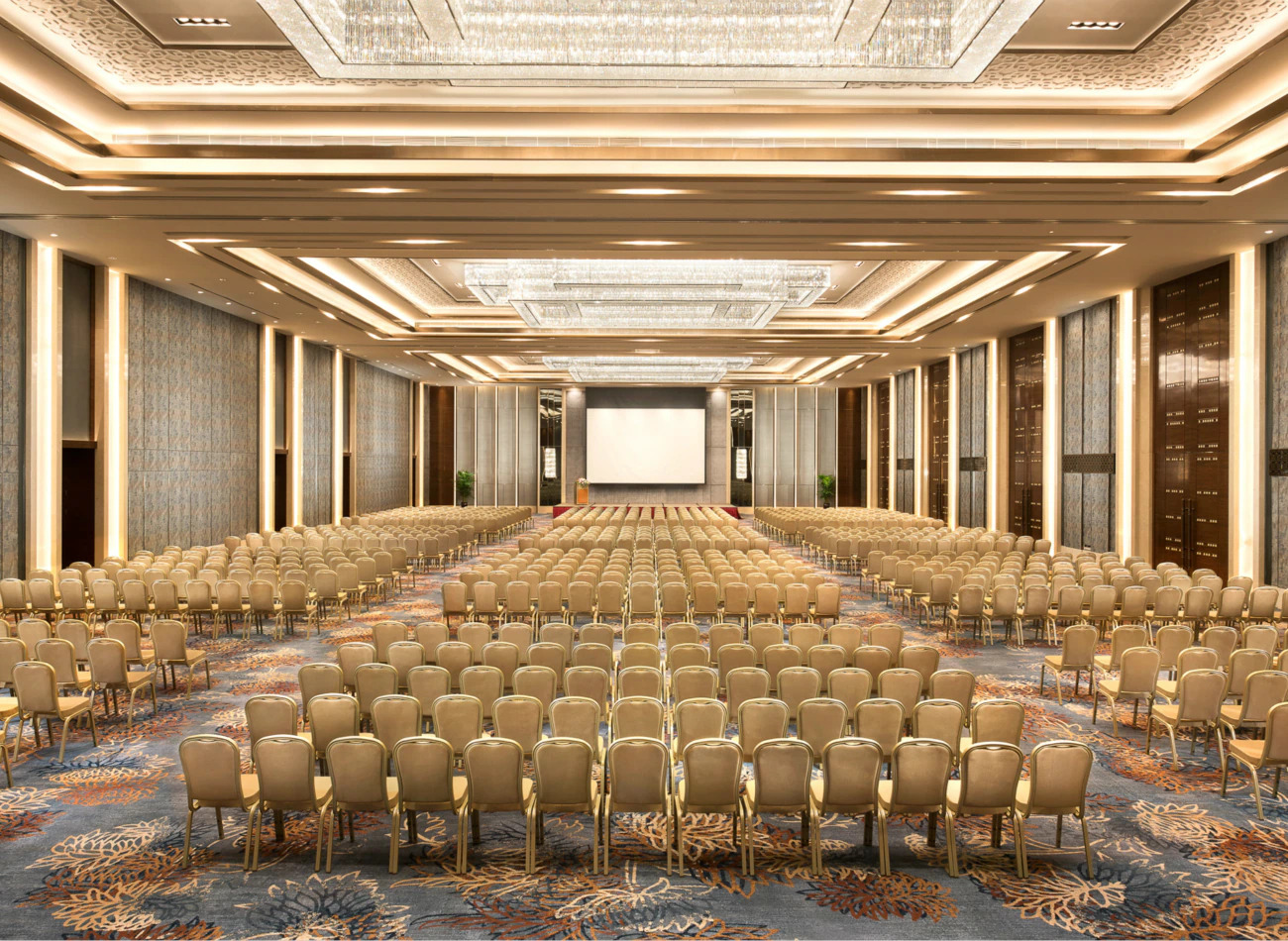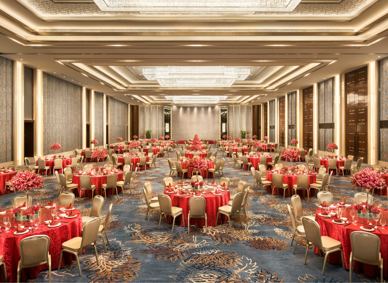 濟南香格里拉擁有規(guī)模宏大的會議與宴會設(shè)施,占據(jù)兩個樓層,總面積超過3200平方米。其中包括規(guī)模宏大的宴會廳,占地面積達1368平方米、高八米的無柱宴會廳至多可容納1500位客人。
