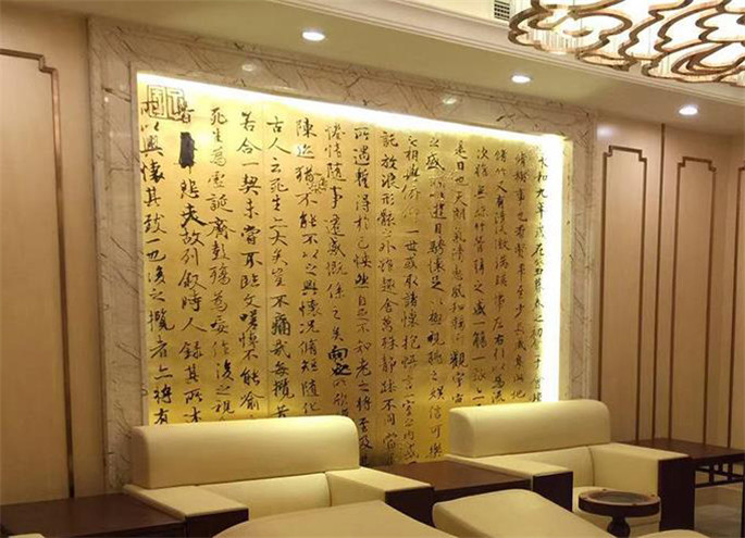 漆畫(huà)是以天然大漆為主要材料的繪畫(huà),除漆之外,還有金、銀、鉛、錫以及蛋殼、貝殼、石片、木片等材料。入漆顏料除銀朱之外,還有石黃、鈦白、鈦青藍(lán)、鈦青綠等。漆畫(huà)的技法豐富多彩。依據(jù)其技法不同,漆畫(huà)又可分成刻漆、堆漆、雕漆、嵌漆、彩繪、磨漆等不同品種。酒店漆畫(huà)是指運(yùn)用在酒店空間里的漆畫(huà)。酒店漆畫(huà)以天時(shí)、地氣、材美、工巧四要素作為創(chuàng)作的綜合條件,運(yùn)用著人工和天工巧妙結(jié)合的人畫(huà)一半、天畫(huà)一半的技法。